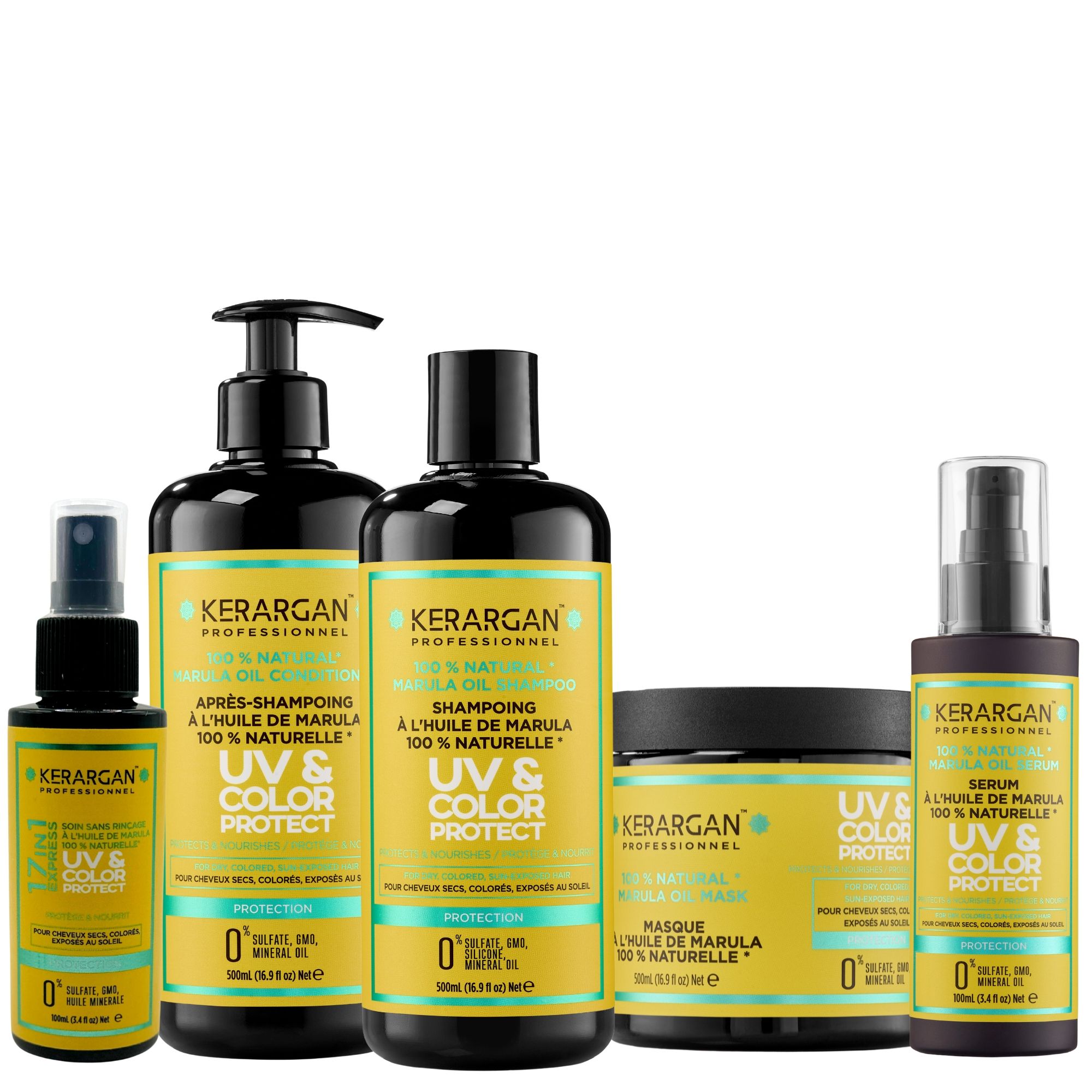 Rivitalizza i tuoi capelli secchi, danneggiati o colorati con il trattamento completo Kerargan arricchito con Olio di Marula.