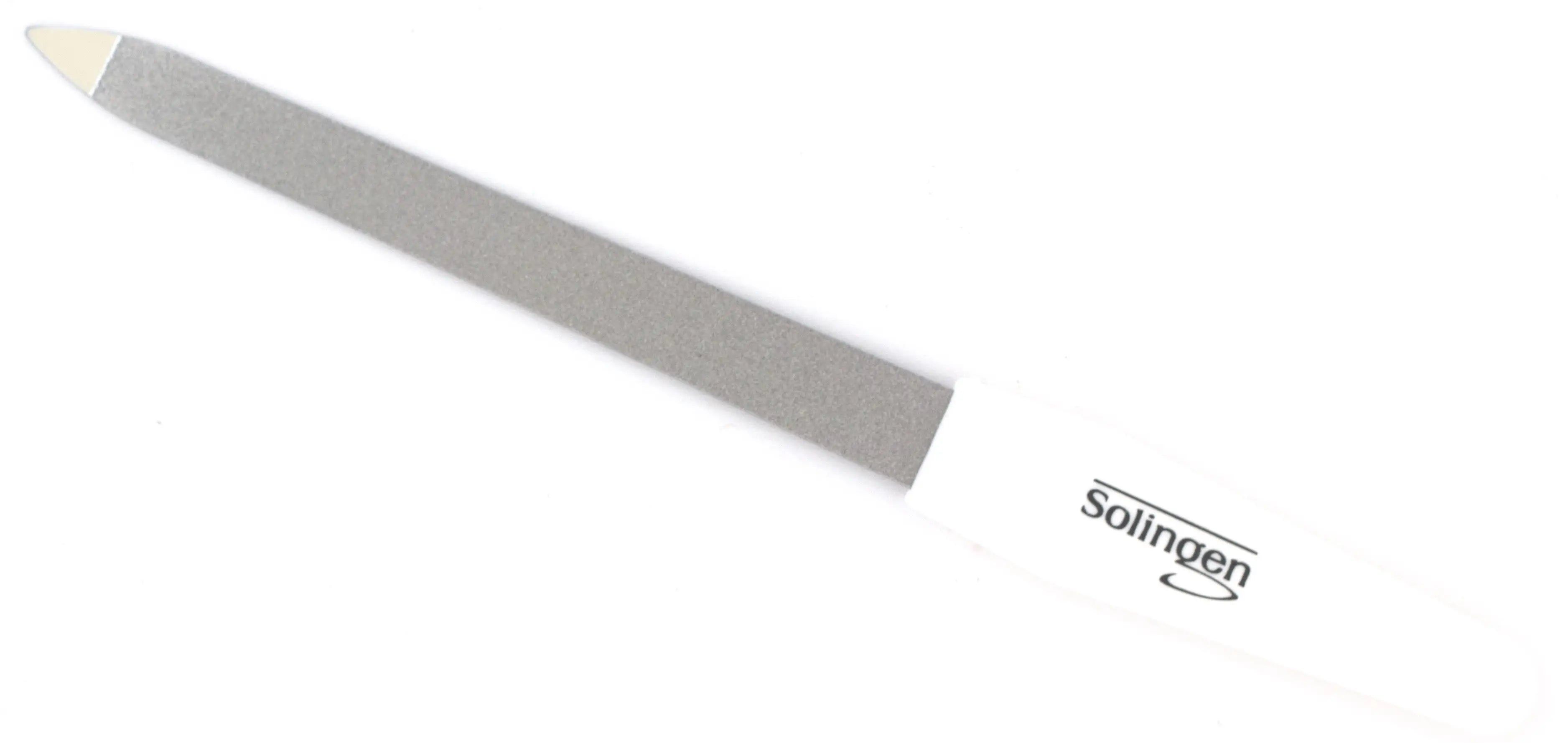 La lima per unghie Saphir Solingen a doppia faccia dovrebbe far parte di ogni kit per la cura delle unghie. I suoi due lati versatili consentono di modellare, limare e levigare le unghie. Dotata di una lama di limatura temprata, questa lima in zaffiro garantisce una lunga durata che vi delizierà.