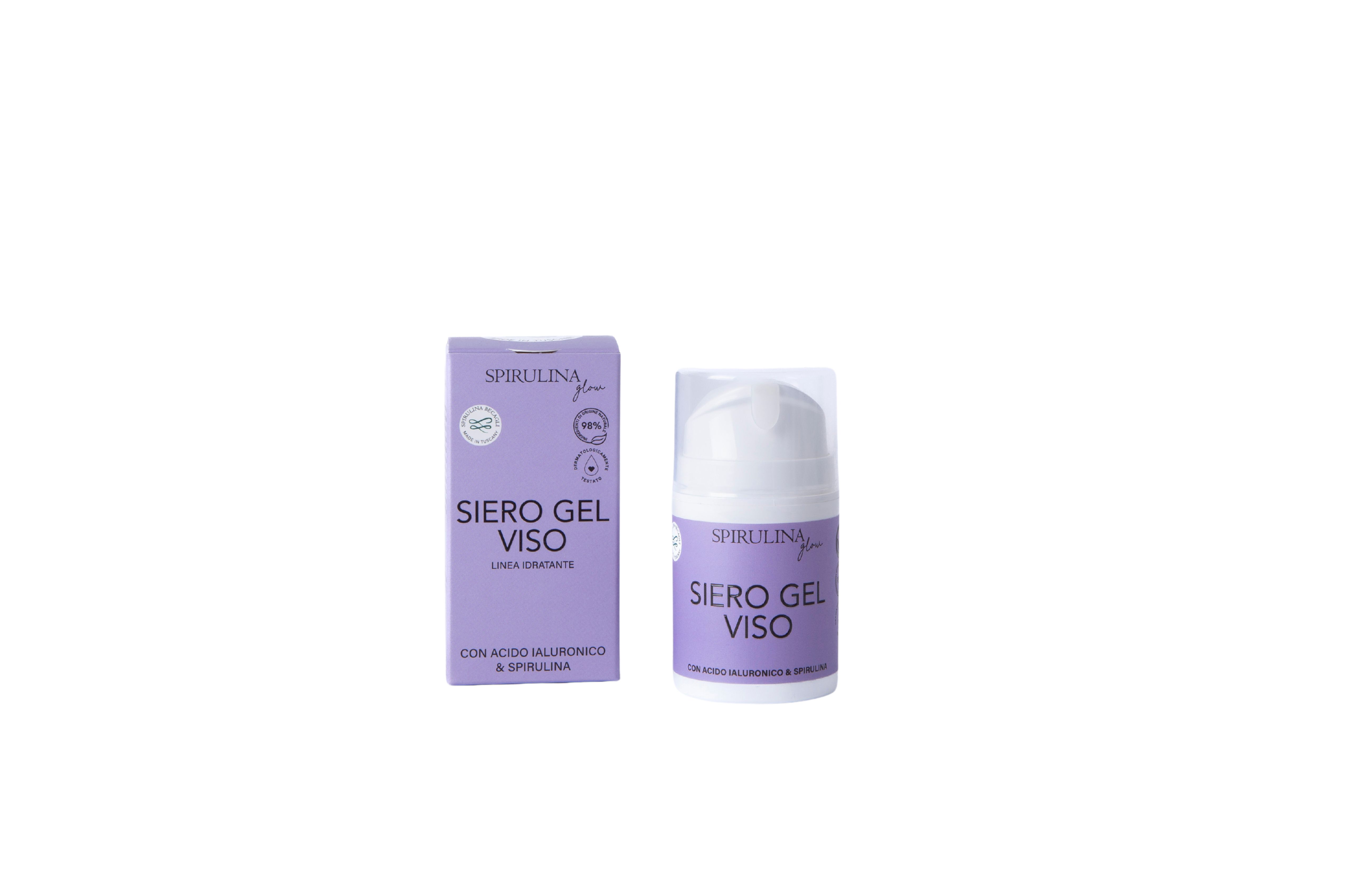 Siero Viso in gel con spirulina e acido ialuronico.