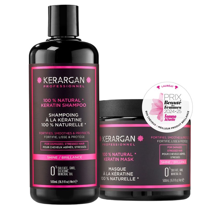 Risveglia la bellezza naturale dei tuoi capelli con il nostro Duo Kerargan alla cheratina! Composto da uno shampoo rivitalizzante e una maschera intensiva, questo set è il compagno ideale per capelli danneggiati. La loro sinergia rafforza, leviga e nutre in profondità. Trasforma i tuoi capelli già dalla prima applicazione!