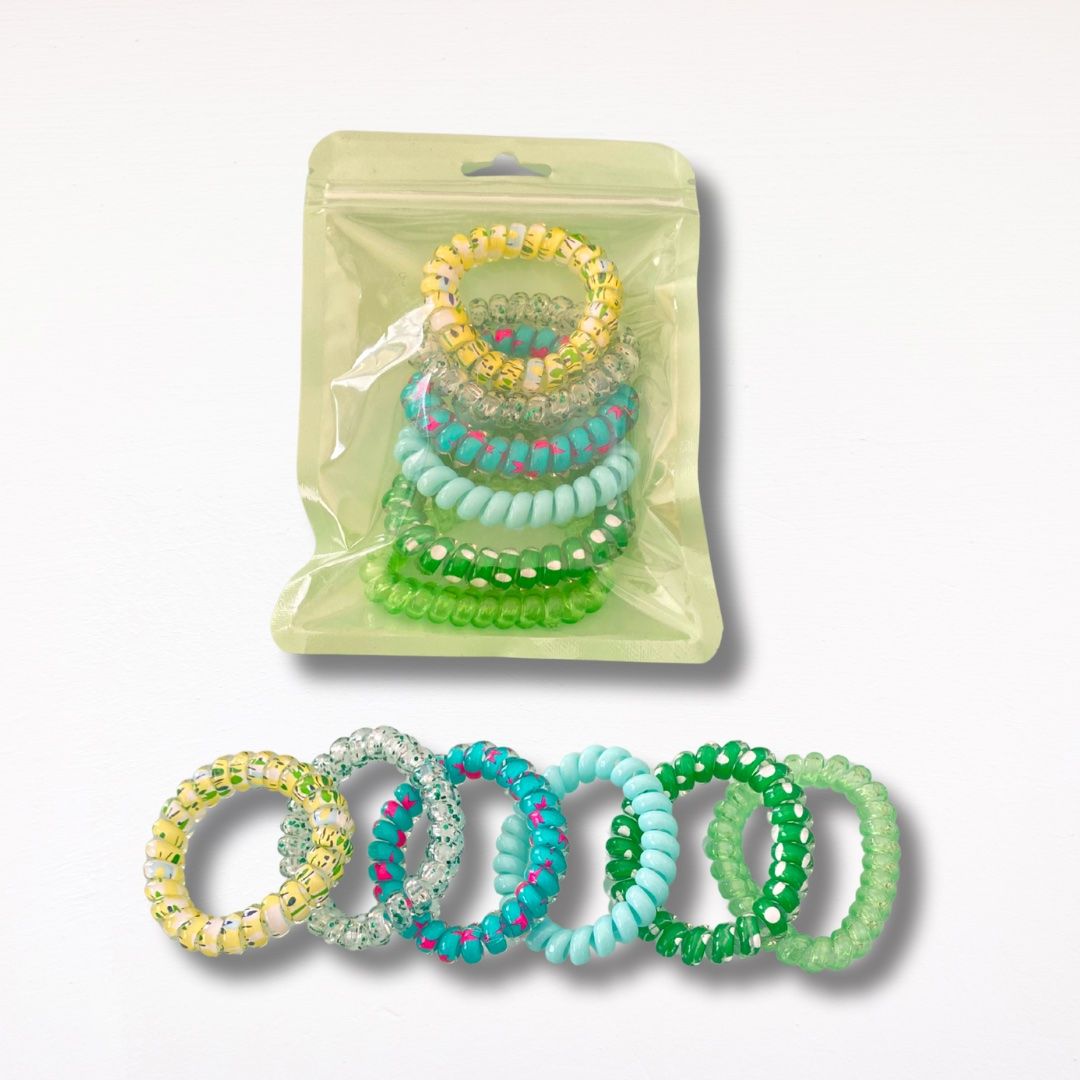 HomeCosmetici e IgieneCapelliStrumenti e accessori per lo StylingAfroricci Elastico Bobble Capelli Ricci - colore verde mix 6 pezzi