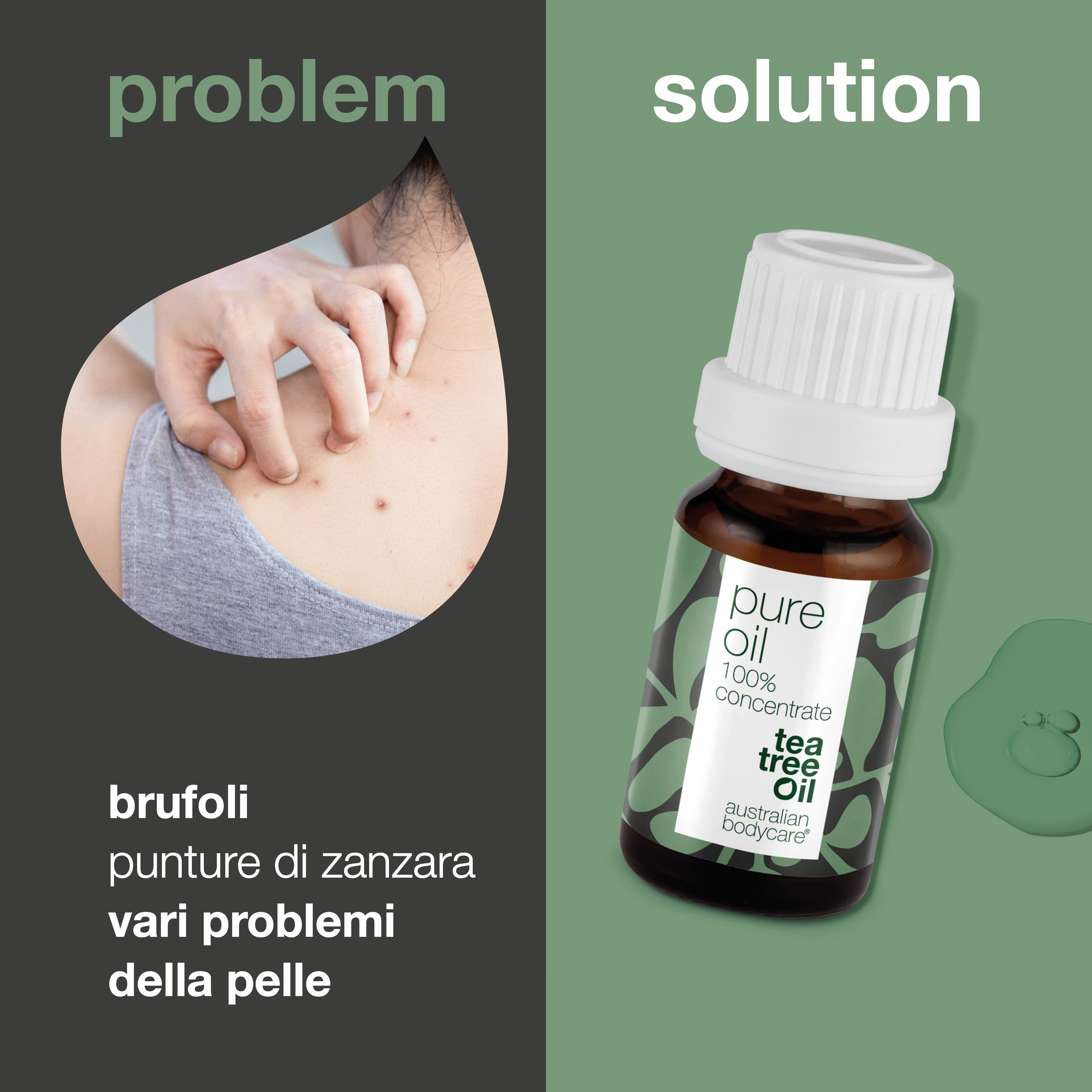 2. Soluzione Efficace: Olio di tea tree puro con proprietà antisettiche potenti che guariscono e proteggono naturalmente la pelle.