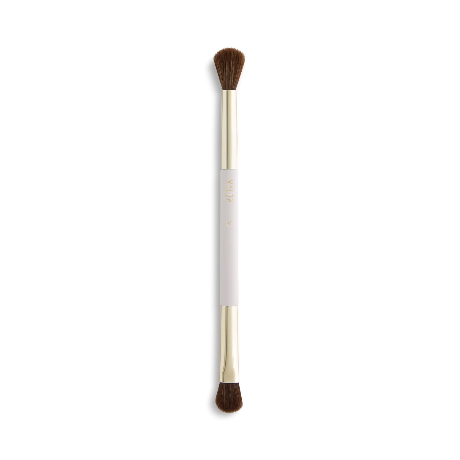 Applicare gli ombretti sulla palpebra con la parte arrotondata ed in seguito sfumarli delicatamente con la parte affusolata nella piega palpebrale.