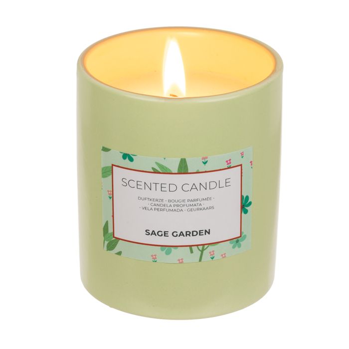 Candela profumata, Giardino di Salvia, in vaso di ceramica verde oliva, ca. 8,5 x 10 cm, in scatola regalo