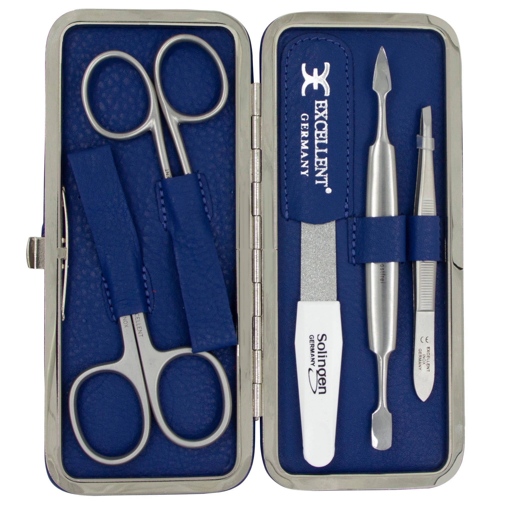 Excellent Astuccio per manicure 5 pezzi in similpelle blu