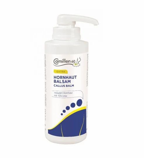 Scoprite il nuovo flacone Camillen 60 Callus Reduction Balm con pompa integrata per un'applicazione comoda e pulita. Questo balsamo intensamente nutriente contiene olio di camomilla, estratto di corteccia di salice e 15% di urea (urea) per curare le aree cutanee screpolate e ruvide e ridurre la formazione di calli. Grazie alla sua formulazione non grassa, il balsamo viene assorbito rapidamente e protegge la pelle dalla secchezza. Usatelo regolarmente per mantenere i piedi curati ed elastici.