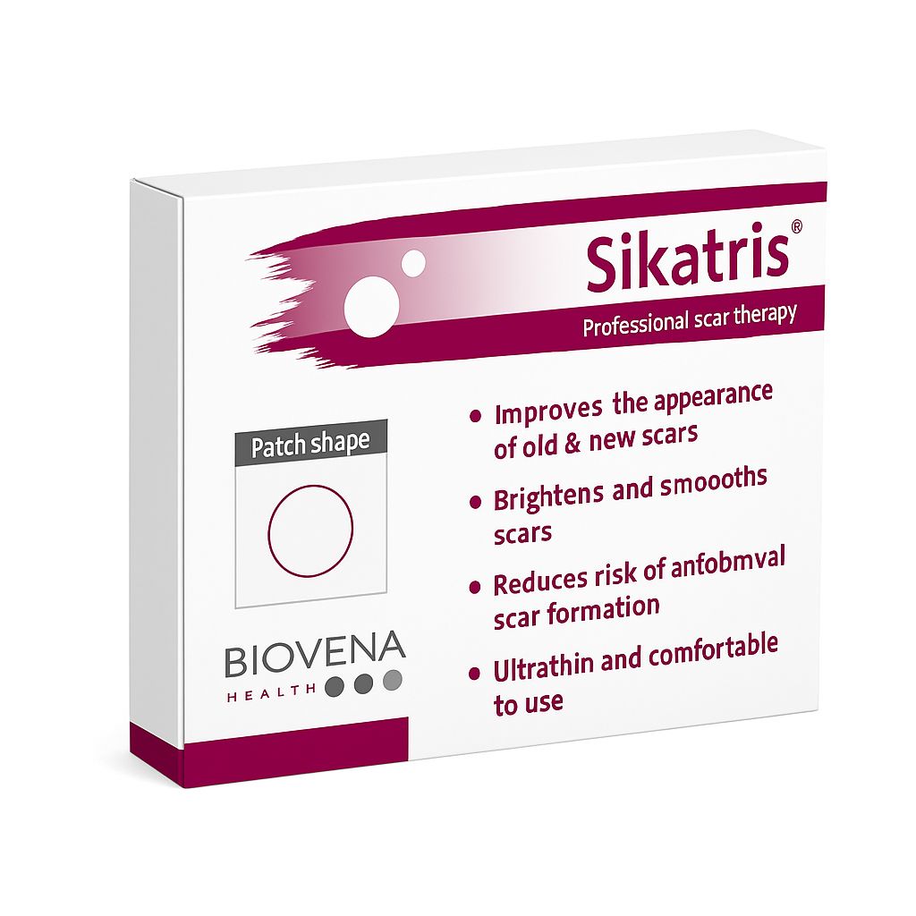 Sikatris è un cerotto con diametro in silicone che riduce la visibilità delle cicatrici e ne favorisce la guarigione.