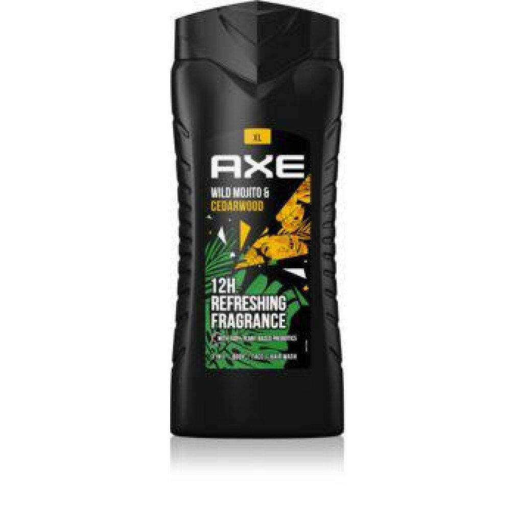 Un trattamento innovativo con una fragranza straordinariaCon il Moijto Verde Selvatico e il Legno di Cedro, AXE ha sviluppato una formula detergente unica che rimane fresca per 12 ore. La fragranza incanta con sfumature di limone fresco e note di menta e muschio. Questo detergente per il corpo utilizza la tecnologia Skin-Active, in attesa di brevetto, e prebiotici di origine vegetale per promuovere i batteri buoni della pelle e ridurre i batteri cutanei che causano i cattivi odori, assicurando un minore odore corporeo e una maggiore fragranza AXE. Agisce inoltre come un eccellente idratante, è a pH neutro e dermatologicamente testato. Gli ingredienti sono per l\'87% naturali e il flacone è realizzato al 100% in plastica riciclata (ad eccezione del tappo).