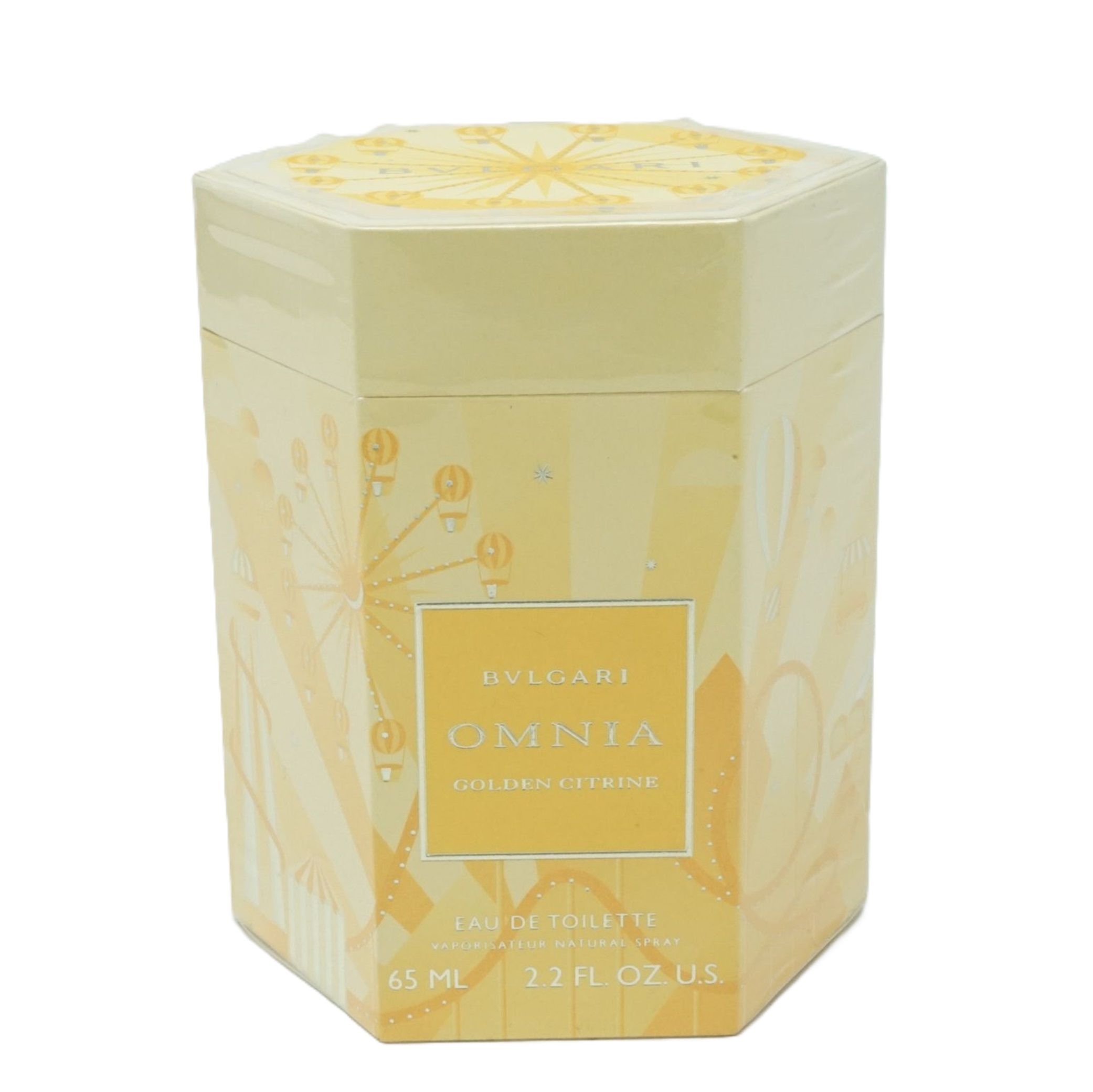 Bulgari Omnia Golden Citrine Eau de Toilette 65 ml � una fragranza agrumata-floreale per donna. Una nota di testa rinfrescante e fruttata di mandarino siciliano e pesca bianca incontra una nota di cuore floreale di ylang-ylang e gelsomino. La base di benzoino e legno di cedro completa perfettamente la fragranza femminile. Questa fragranza radiosa sembra un raggio di sole in una calda giornata estiva. Golden Citrine si presenta in un flacone insolito e, con la sua tonalit� giallo oro, irradia una sensazione di benessere, energia e buonumore.