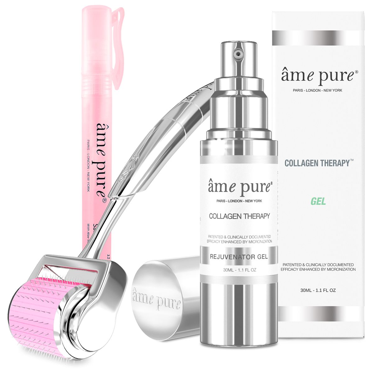 Il rullo facciale âme pure® CIT leviga la superficie della pelle con aghi microfini in acciaio chirurgico. Questo processo crea piccoli fori invisibili nello strato superiore della pelle che innescano il processo di guarigione del corpo, attivando immediatamente la produzione di collagene ed elastina. Il naturale processo di guarigione della pelle aiuta a riempire e levigare le rughe, le linee sottili e le cicatrici, riducendo i pori dilatati.