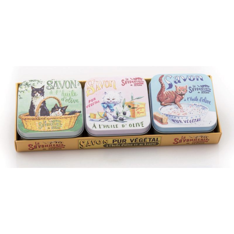 HomeCosmetici e IgieneMani e UnghieSapone per le ManiLa Savonnerie de Nyons - Scatola in Metallo con Sapone - 3 pz. Set Sapone "Gatti"