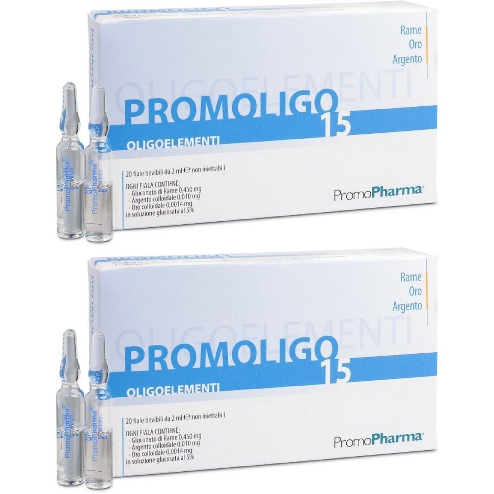 - 2x PromoPharma® PROMOLIGO 15 Rame/Oro/Argento Oligoelementi 40 ml