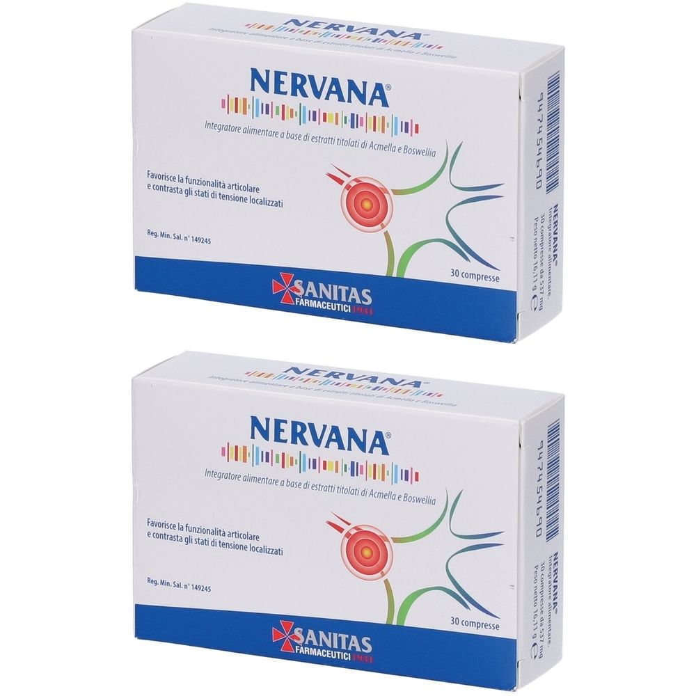 Integratore alimentare naturale, con formulazione brevettata, a base di estratti titolati di Acmella oleracea e Boswellia serrata. La formulazione gastro-protetta di NERVANA consente il passaggio della compressa nello stomaco senza produrre alcun effetto indesiderato. I due principi naturali sono inoltre specificamente studiati per ottimizzarne l’attività e veicolare più rapidamente le sostanze nell'organismo: boswellia è integrata in un Fitosoma (Indena), mentre acmella è formulata con ciclodestrina. Integratore alimentare, con formulazione brevettata, a base di estratti titolati di Acmella oleracea e Boswellia serrata che favorisce la funzionalità articolare, contrasta gli stati di tensione localizzati e il malessere generale. Nervana può essere utile in associazione alla terapia farmacologica per problematiche croniche e trattamenti a lungo termine.