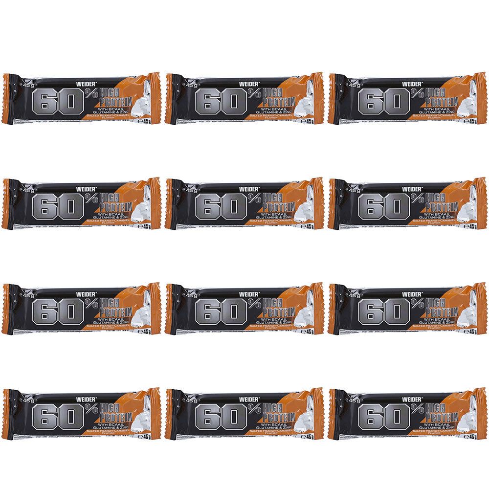 - 12x Weider 60% Protein Bar Arachidi Caramello 45 g