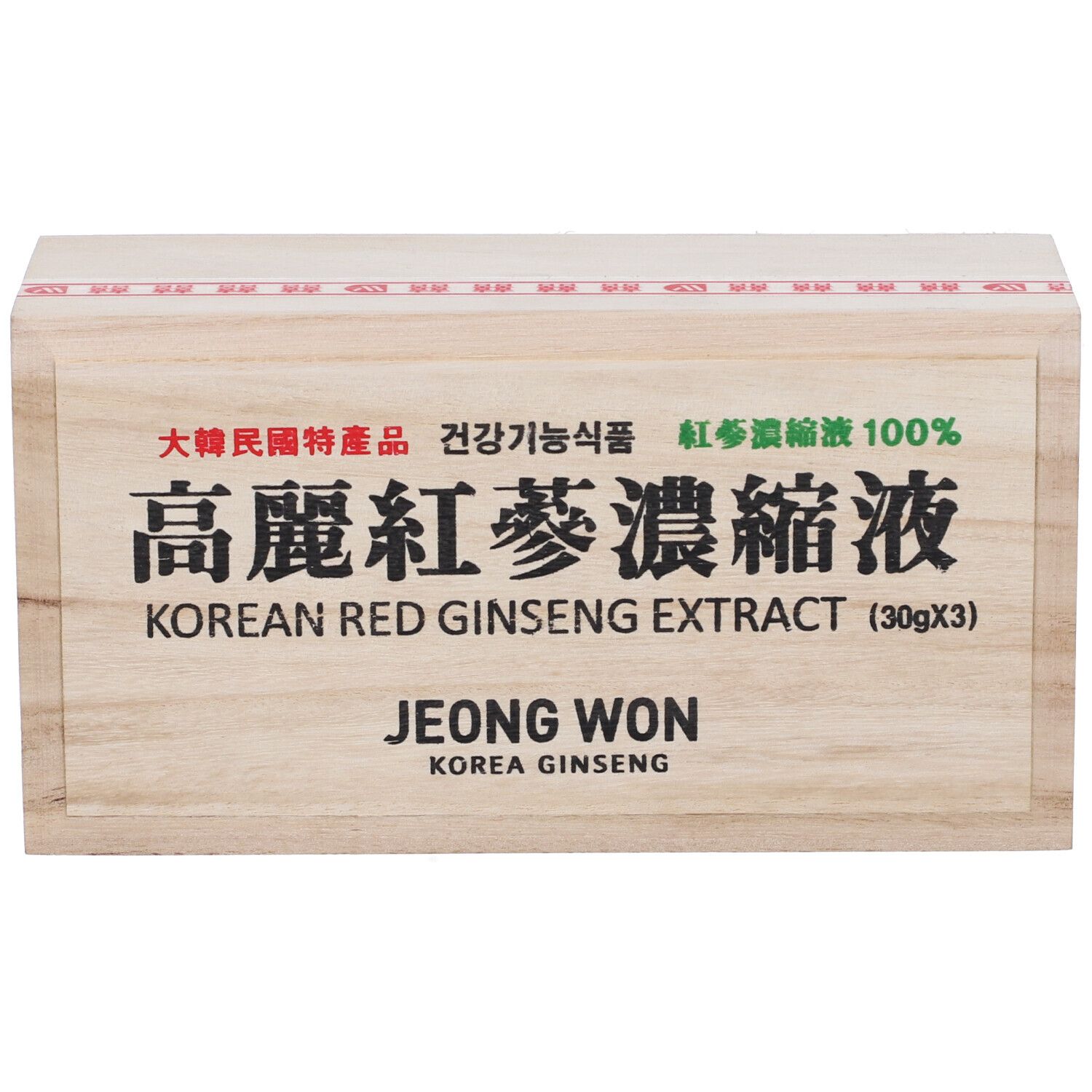 Il “Ginseng rosso” è ottenuto vaporizzando e seccando Ginseng di 6 anni senza asportarne la scorza. La qualità è determinata dalla testa del rizoma, dal rapporto fra radice principale e radici laterali, dal colore della scorza e dalla morfologia della struttura interna. Questo prodotto è un estratto concentrato di Ginseng Koreano Rosso puro al 100% ottenuto tramite un processo di estrazione a freddo dal sapore ed aroma autentici.
