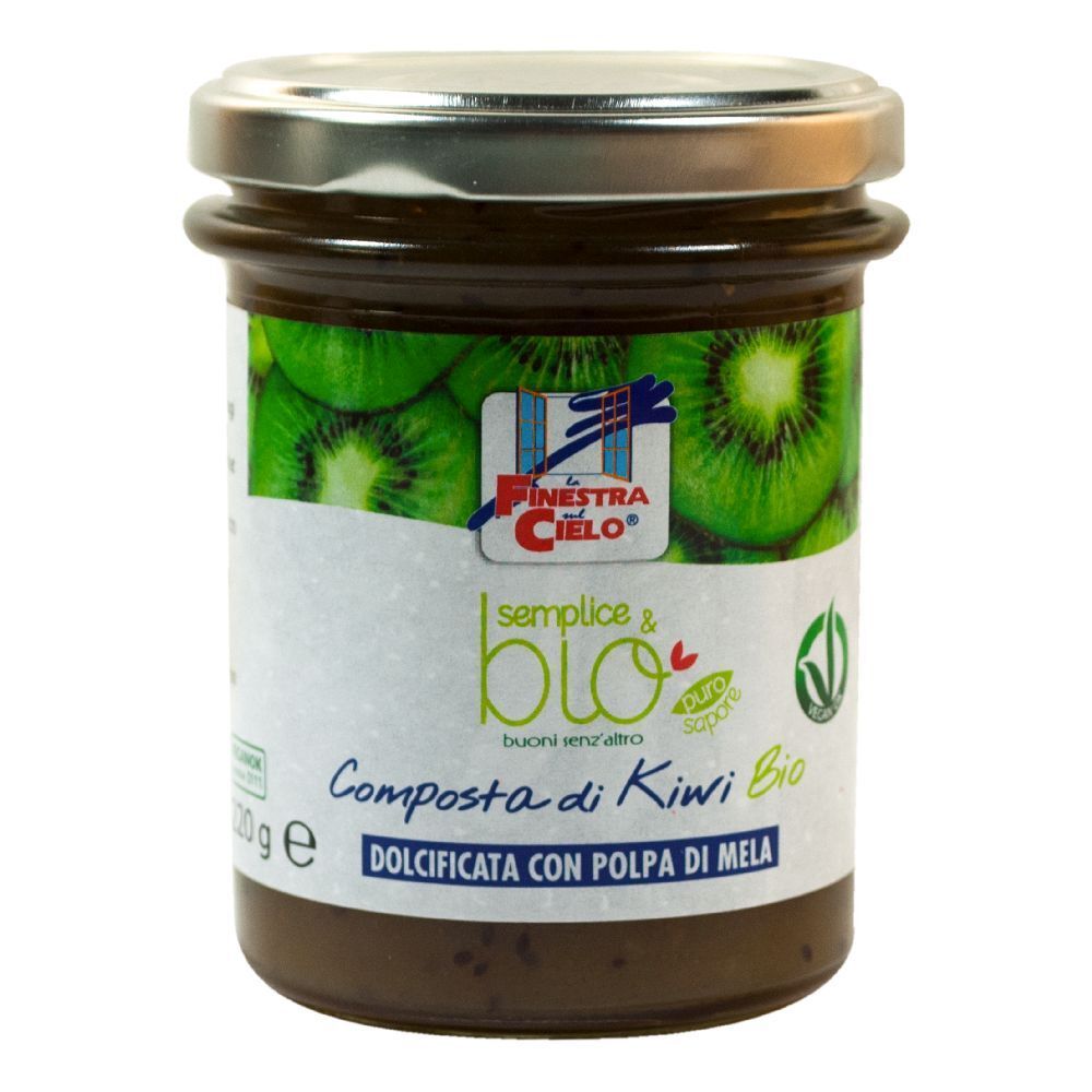 Kiwi* (70%); polpa di mela* (28,6%); gelificante: pectina; correttore di acidità: acido citrico. * Da agricoltura biologica.