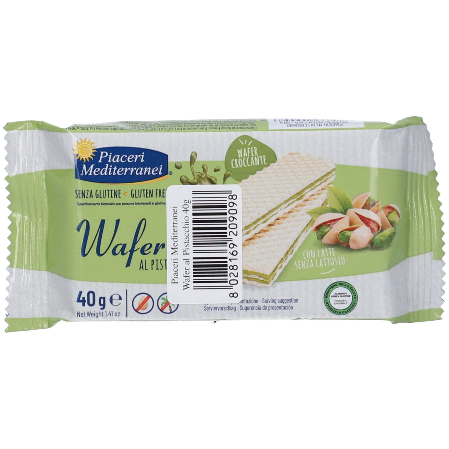 Wafer al pistacchio sono senza glutine, senza uova e con latte senza lattosio. Specificamente formulato per persone intolleranti al glutine.
