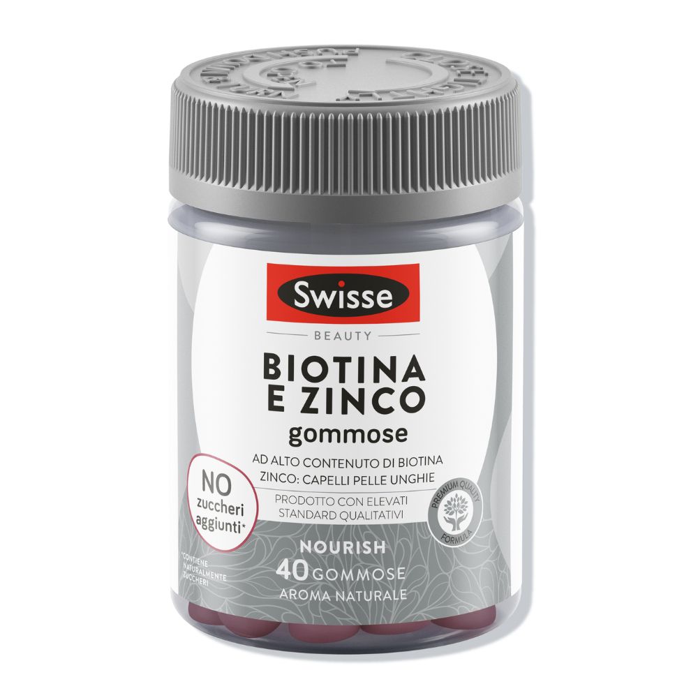 Swisse Beauty Biotina e Zinco è un integratore alimentare specificatamente formulato per chi ha capelli opachi e spenti, unghie fragili e non ama assumere pillole, in formato gommose ad alto contenuto di fibre, dal gusto frutti rossi. La combinazione di attivi contribuisce a supportare in profondità il mantenimento della salute fisiologica di capelli, pelle e unghie.
