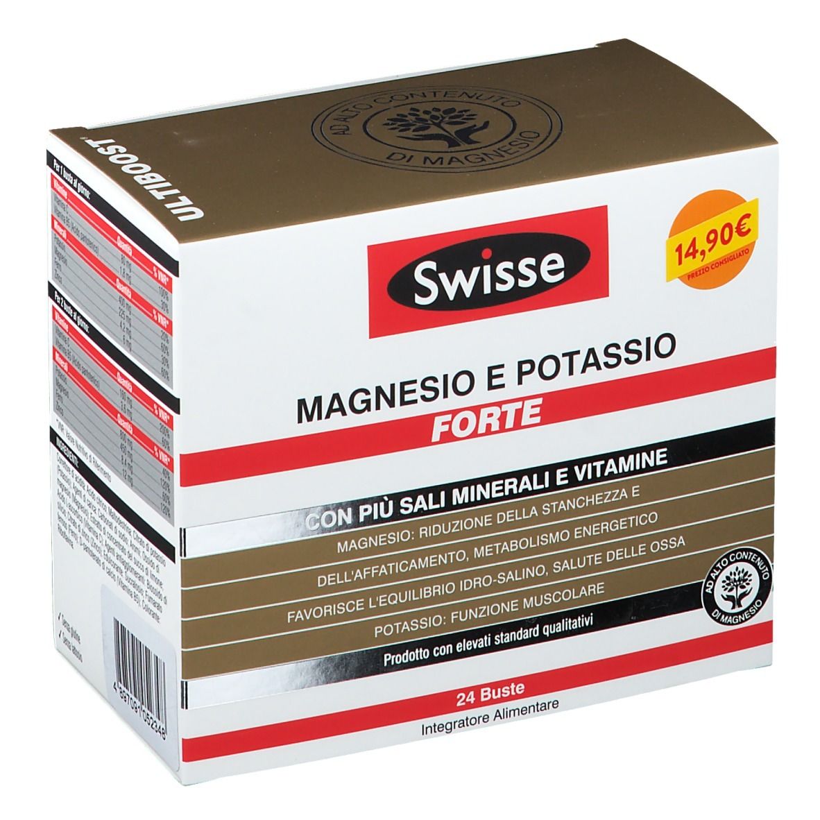 Swisse Ultiboost Magnesio e Potassio è specificatamente formulato per reintegrare i due minerali in caso di intensa sudorazione o di sforzi fisici particolarmente impegnativi.Swisse Ultiboost Magnesio e Potassio è formulato con magnesio, che aiuta a ridurre stanchezza e fatica, a produrre energia e a sostenere una normale sintesi proteica e funzione psicologica, e con potassio, che contribuisce a un corretto funzionamento del sistema nervoso e muscolare e per mantenere una normale pressione sanguigna.