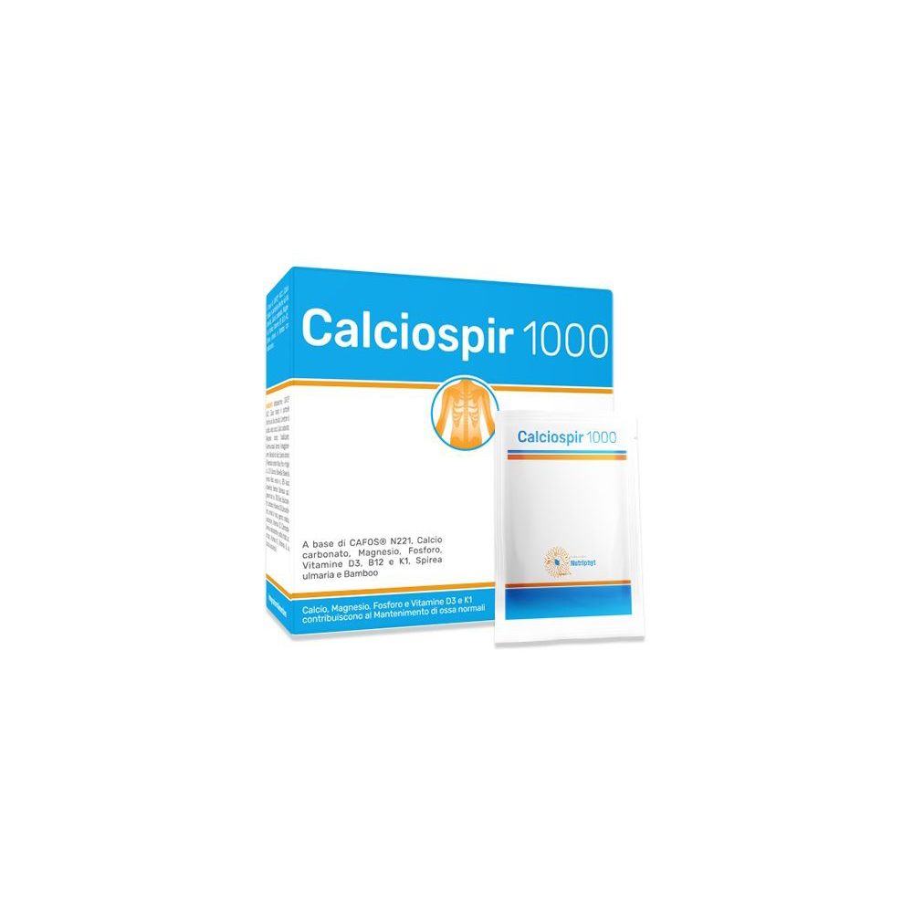 Integratore alimentare a base di CAFOS N221, calcio carbonato, magnesio, fosforo, vitamine D3, B12 e K1, spirea ulmaria e bamboo.