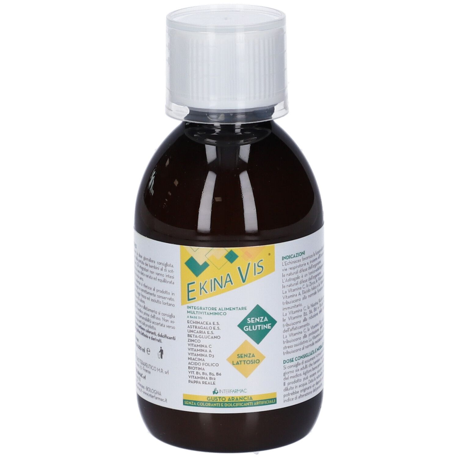 Integratore alimentare multivitaminico. L'echinacea favorisce la funzionalità delle prime vie respiratorie e, insieme all'uncaria, supporta le naturali difese dell'organismo. L'astragalo è un tonico-adattogeno e favorisce le naturali difese dell'organismo. La vitamina C, lo zinco, le vitamine B6 e B12, la vitamina A, l'acido folico e la vitamina D3 contribuiscono alla normale funzione del sistema immunitario. La vitamina C, la niacina, l'acido pantotenico, le vitamine B2, B6, B12 e l'acido folico contribuiscono alla riduzione della stanchezza e dell'affaticamento. La vitamina C, la vitamina B2 e lo Zinco contribuiscono alla protezione delle cellule dallo stress ossidativo. La vitamina B1 e la biotina contribuiscono al normale metabolismo energetico. Il prodotto non contiene coloranti, dolcificanti artificiali nè glutine, lattosio e derivati. Gusto arancia.