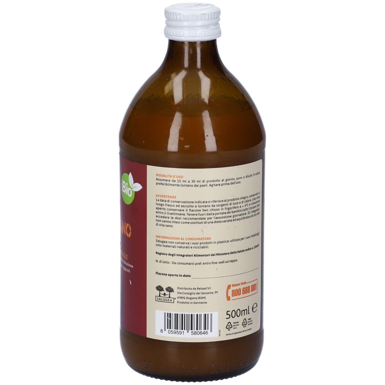 Assumere da 15 ml a 30 ml di prodotto al giorno, puro o diluito in acqua, preferibilmente lontano dai pasti. Agitare prima dell'uso.
