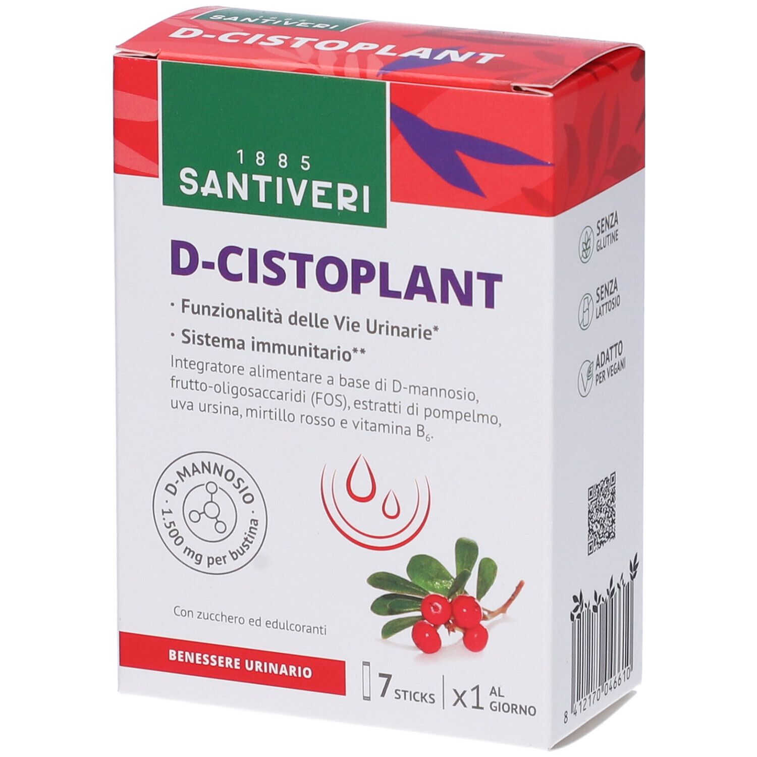 Integratore alimentare a base di D-mannosio, frutto-oligosaccaridi (FOS), estratti di pompelmo, uva ursina, mirtillo rosso e vitamina B6. Con zucchero ed edulcoranti.