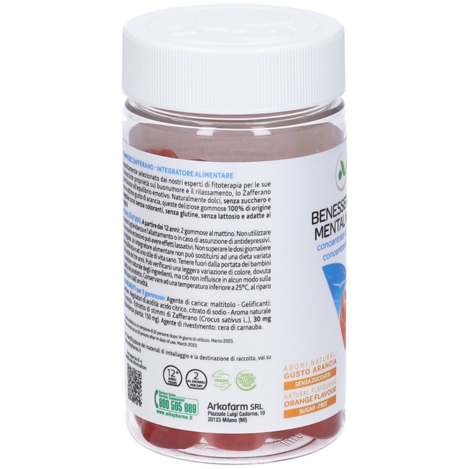 Integratore alimentare. Lo zafferano contribuisce all’equilibrio emotivo. Naturalmente dolci, senza zucchero e con un ottimo gusto di arancia, queste gommose 100% di origine vegetale sono senza coloranti e adatte ai vegani.
