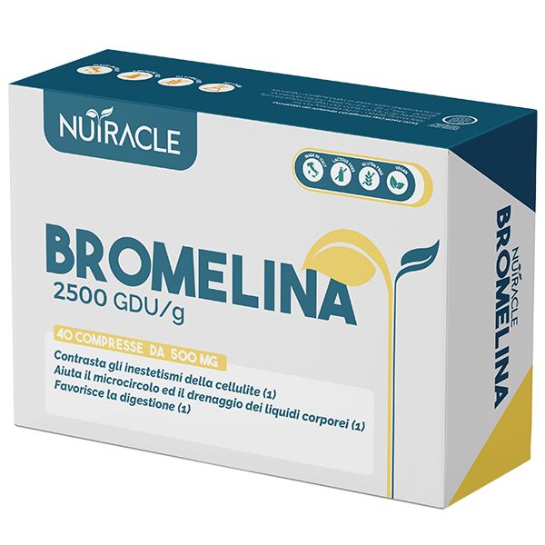 Bromelina di Nutracle è un integratore alimentare in compresse di polvere micronizzata di Bromelina 2500 GDU/g da gambo d'ananas, utile a contrastare gli inestetismi della cellulite.