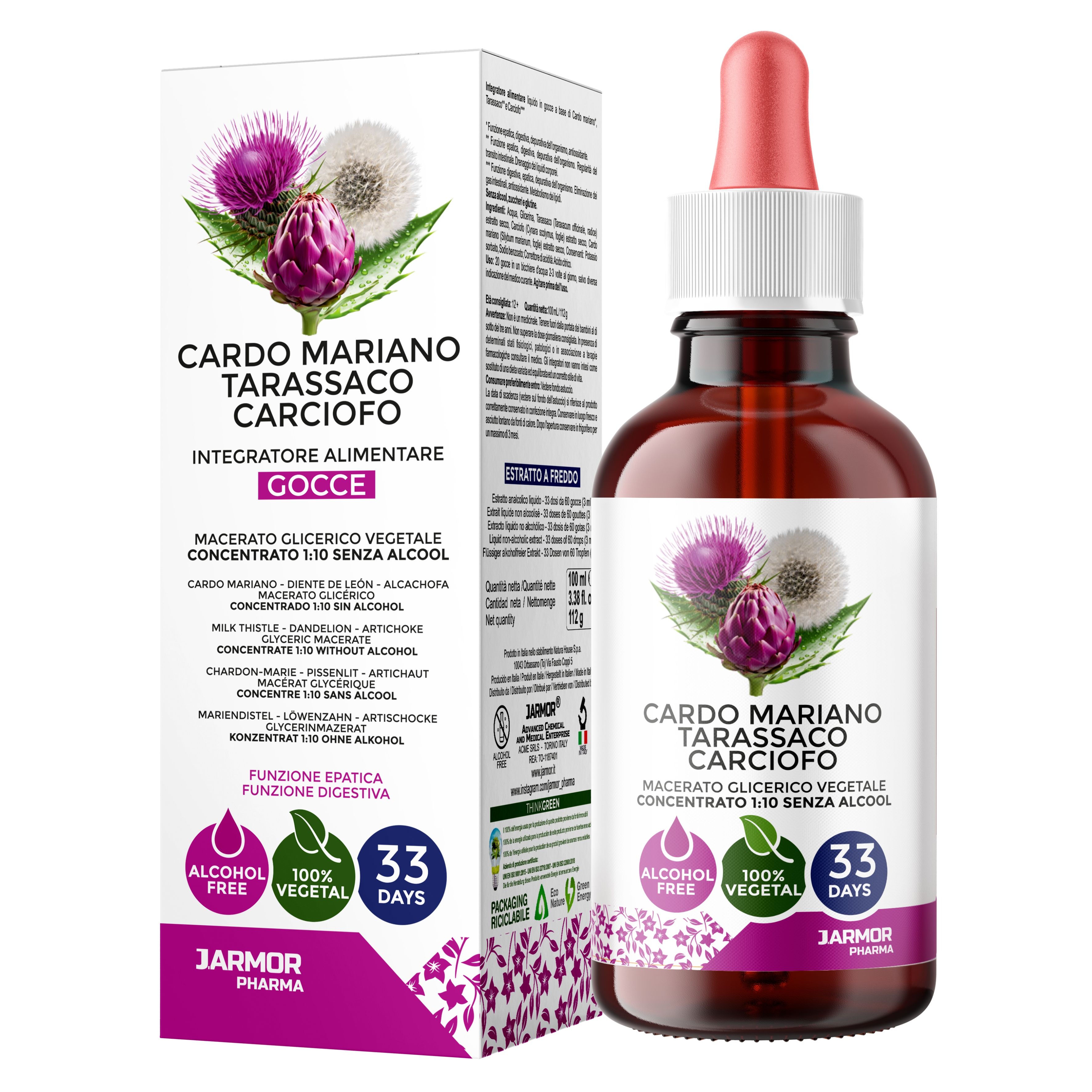 Cardo Mariano Tarassaco Carciofo Gocce 100 ml di J.Armor Pharma,