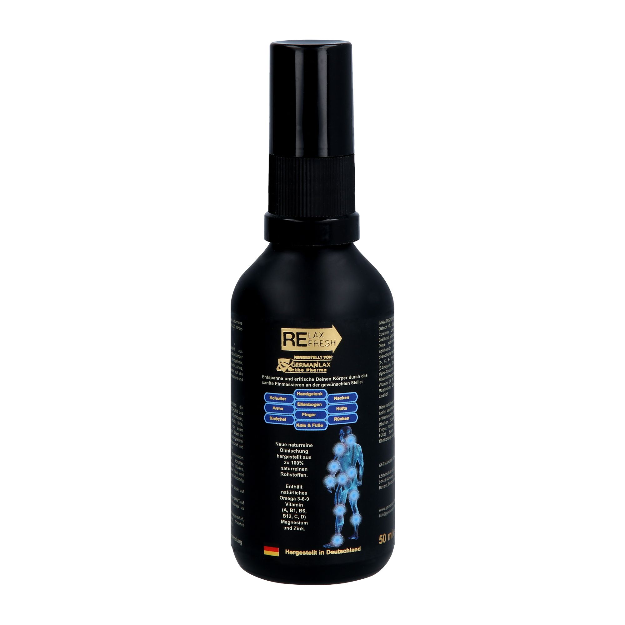 Relax & Refresh è una nuova miscela gel/olio completamente naturale, prodotta da GERMANLAX Ortho Pharma. Relax & Refresh è composto da ingredienti naturali che, massaggiati delicatamente sulla zona desiderata del corpo (nuca, spalle, gomiti, polso, dita, schiena, fianchi, ginocchia, caviglie, braccia, piedi), aiutano a rilassare e rinfrescare. |
