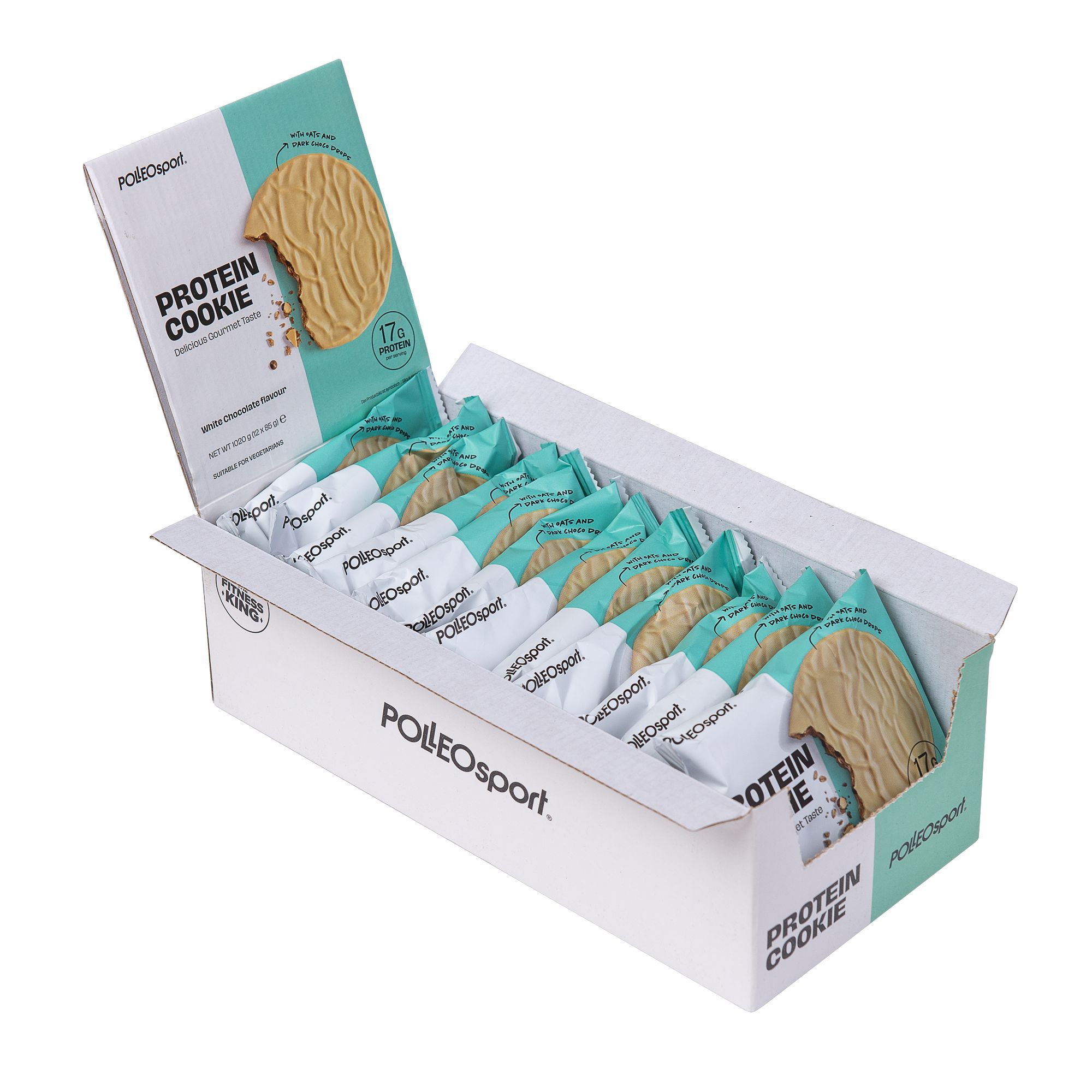 Polleo Sport Protein Cookie è una deliziosa e sana tentazione al cioccolato. Il Protein Cookie è disponibile in tre varianti di gusto: cioccolato fondente, cioccolato bianco e cioccolato al latte. Un vero piacere per tutti gli amanti del cioccolato con un alto contenuto di proteine! I Protein Cookies sono realizzati con ingredienti di alta qualità e una copertura al cioccolato irresistibile che dona al biscotto un gusto perfetto. Da oggi non avrai più bisogno di snack poco salutari ai quali prima non riuscivi a resistere.