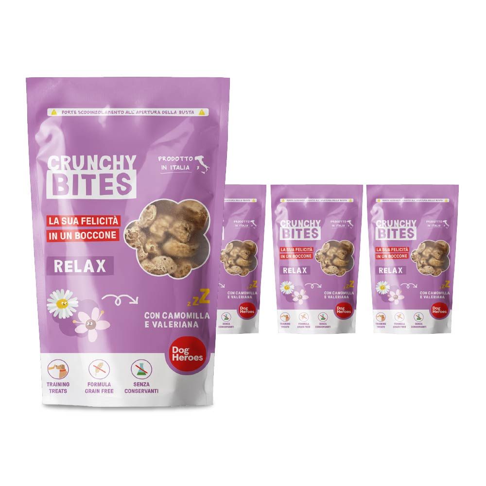 Scorta di Crunchy Bites Relax (Camomilla e Valeriana) | 4 confezioni da 80g