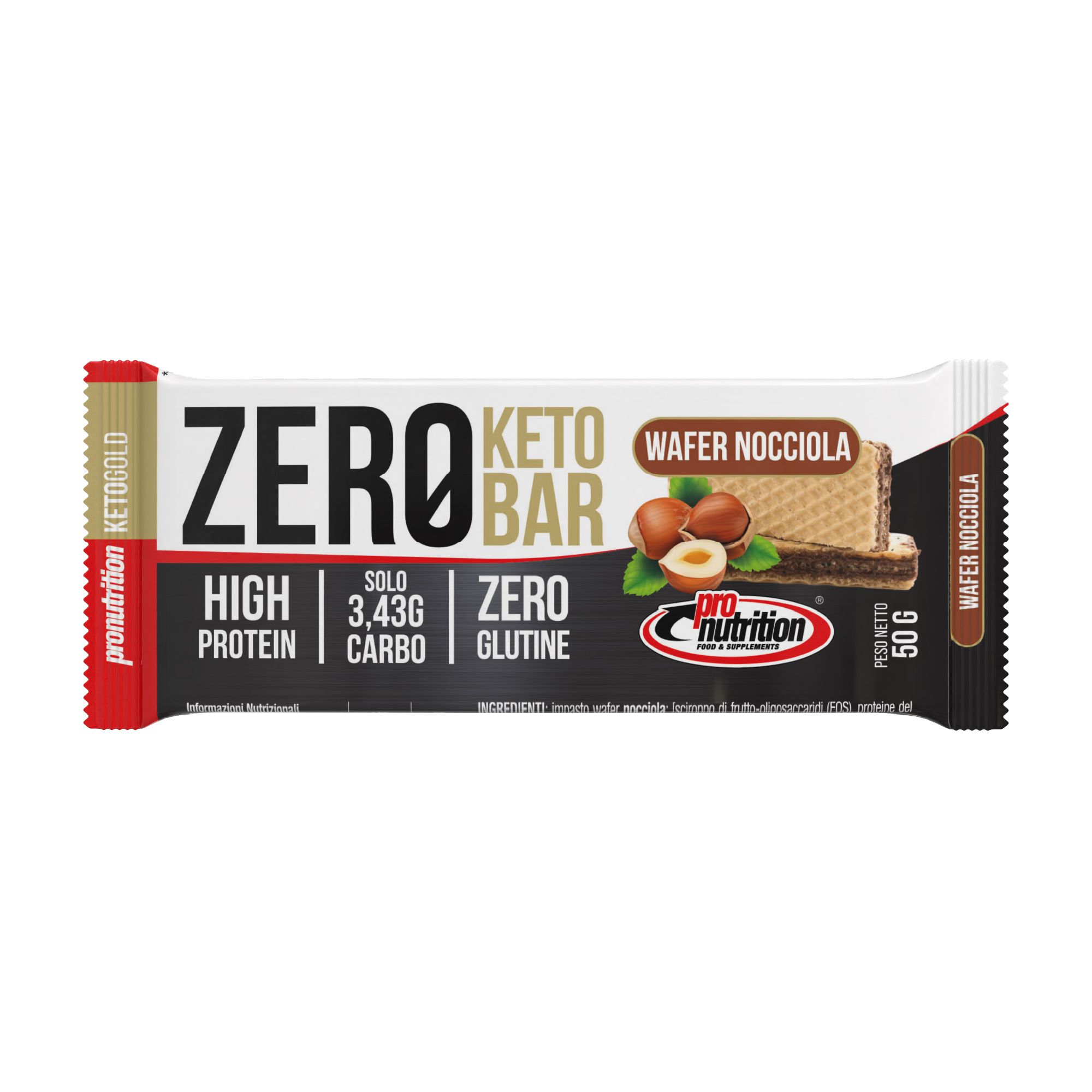 Pronutrition Zero Keto Bar - 50 gr - Wafer nocciola - 40% proteine - Low carb