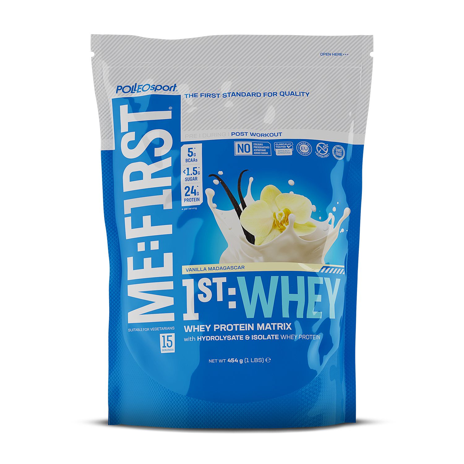 1st Whey Protein, dalla linea di prodotti Me:First, è uno dei prodotti più avanzati nel campo della nutrizione sportiva, disponibile presso Polleo Sport, grazie alla sua nuova formula proteica. Per un perfetto mix, la formula proteica è arricchita con aminoacidi essenziali, BCAA e L-Glutammina. Questa formula proteica è stata sviluppata e raccomandata da nutrizionisti per tutte le persone attive nel campo dello sport che cercano il miglior prodotto per la costruzione efficace dei muscoli.