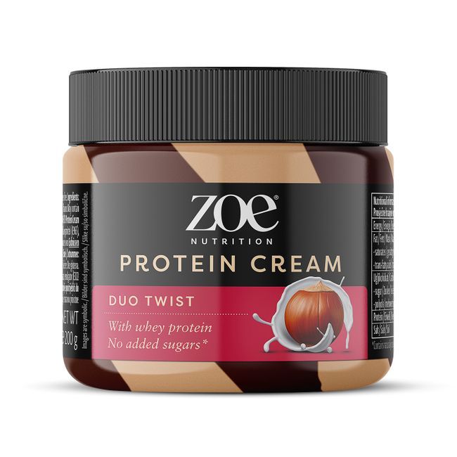 Oltre alla deliziosa combinazione di crema scura e bianca e al basso contenuto di zucchero, la zoe Protein Cream Twist si distingue per un altro aspetto rispetto ad altre creme spalmabili sul mercato: il siero di latte come uno dei principali ingredienti. Con una percentuale di ben il 23% di proteine del siero di latte nel prodotto, ti aiuterà a soddisfare il fabbisogno giornaliero del tuo corpo di questo importante macronutriente.