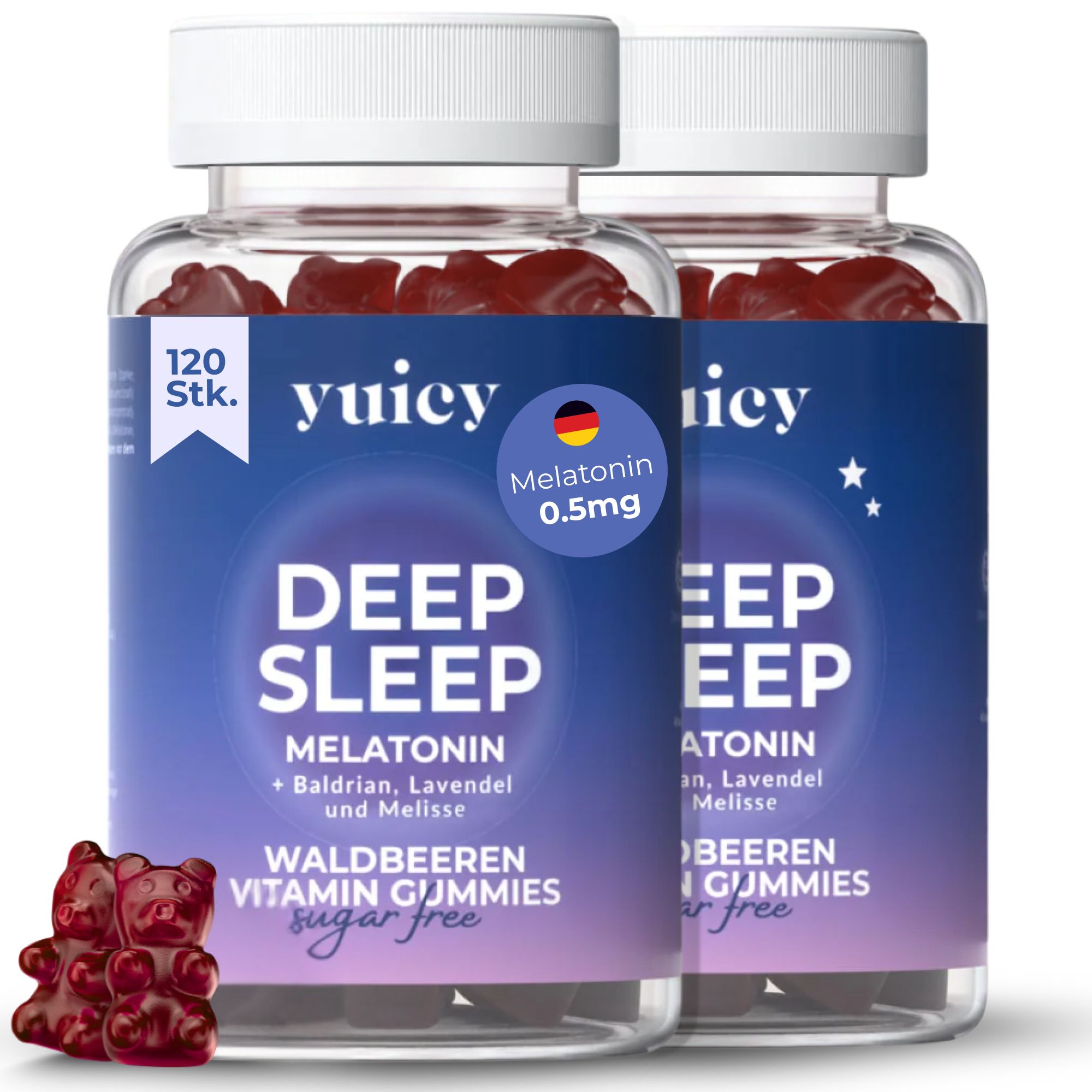 yuicy® Deep Sleep Gummies sono un integratore alimentare sicuro ed efficace, appositamente formulato per favorire un sonno sano e riposante. Le Gomme contengono una speciale combinazione di melatonina, valeriana, lavanda, fiori di camomilla e melissa per aiutare il corpo a rilassarsi. Formulazione basata su nutrienti con effetti scientificamente provati.