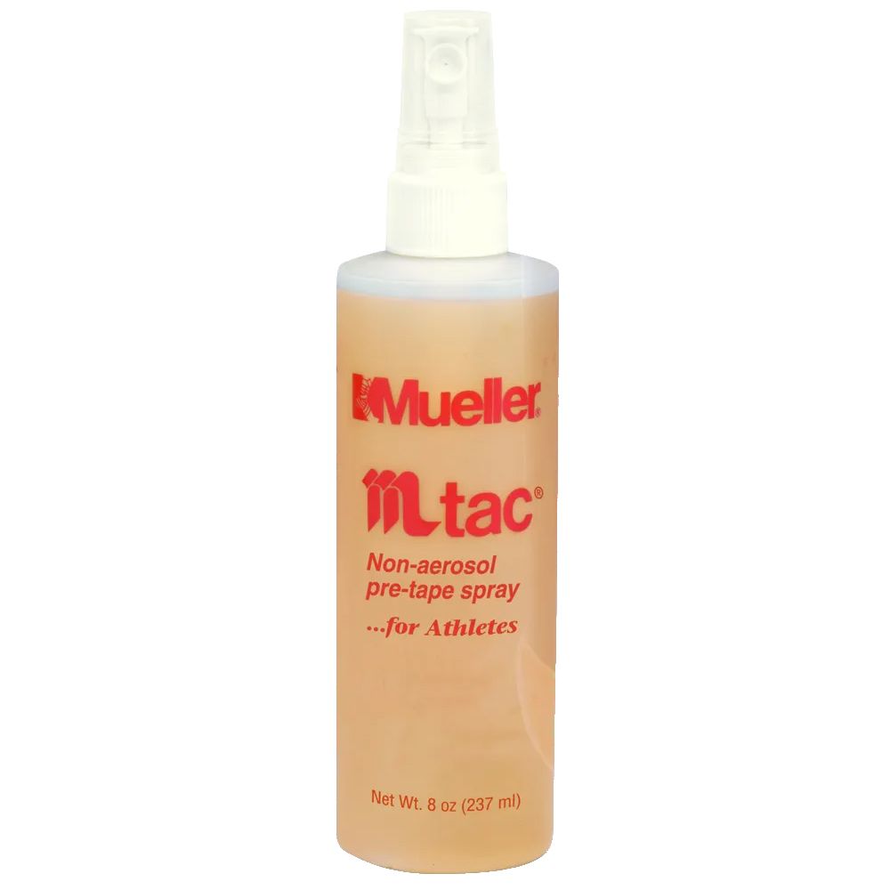 Uno spray non aerosol per migliorare l'adesione dei nastri e delle bende di supporto e per preparare la pelle al processo di taping.