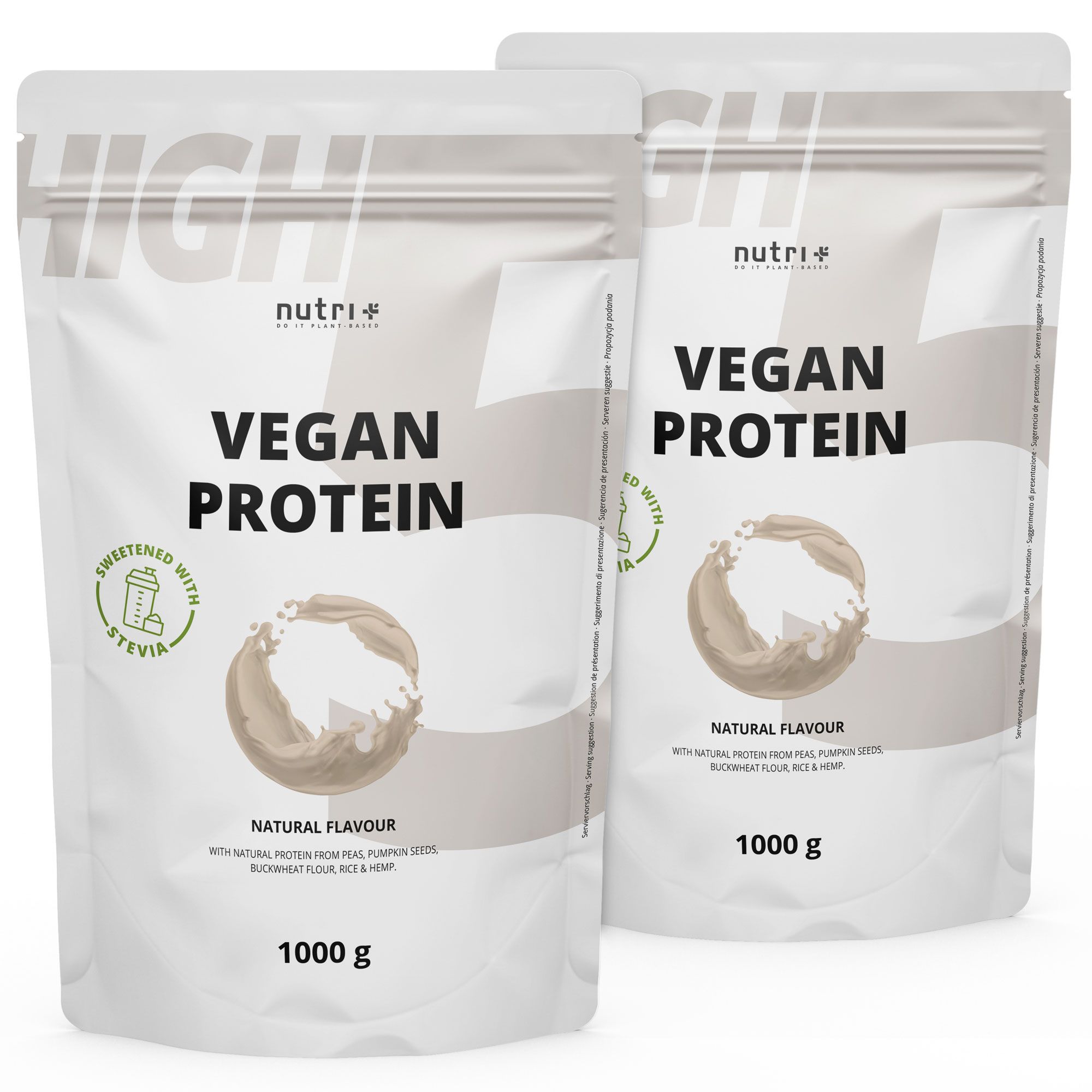 nutri+ High 5 Polvere di Proteine Vegane senza Soia 2kg - con Stevia