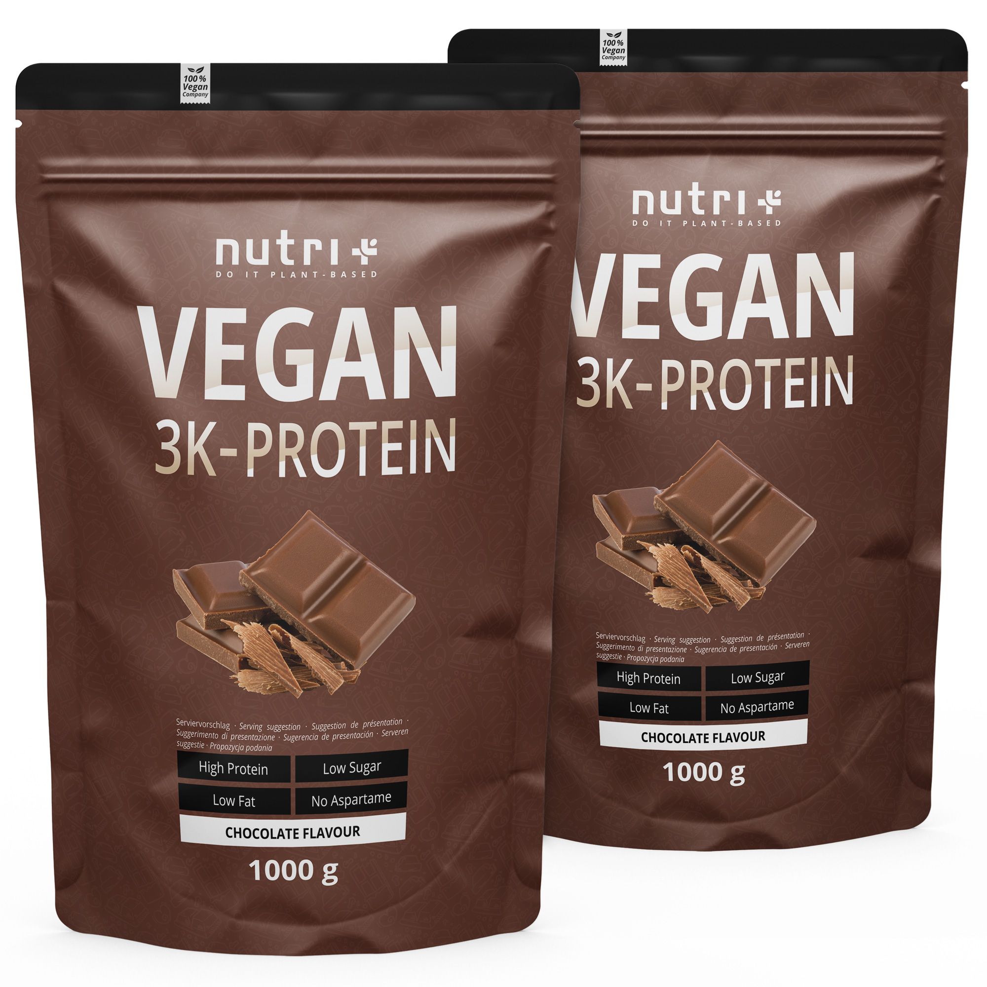 nutri+ Vegan 3K Protein è una proteina multicomponente a base vegetale e consiste in oltre l'80% di proteine (proteine isolate della soia, proteine isolate del pisello e proteine del girasole).