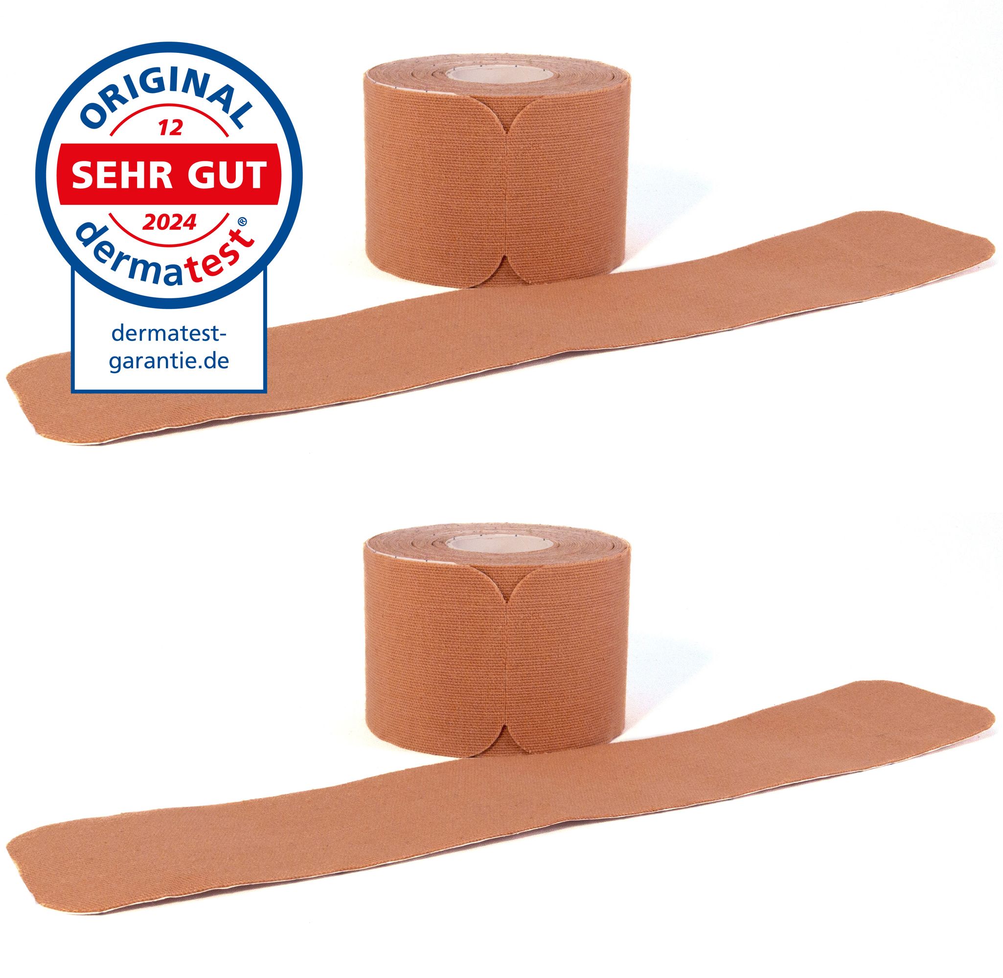 - Riceverete due nastri kinesiologici PRECUT di alta qualità 25 x 5 cm di colore beige.