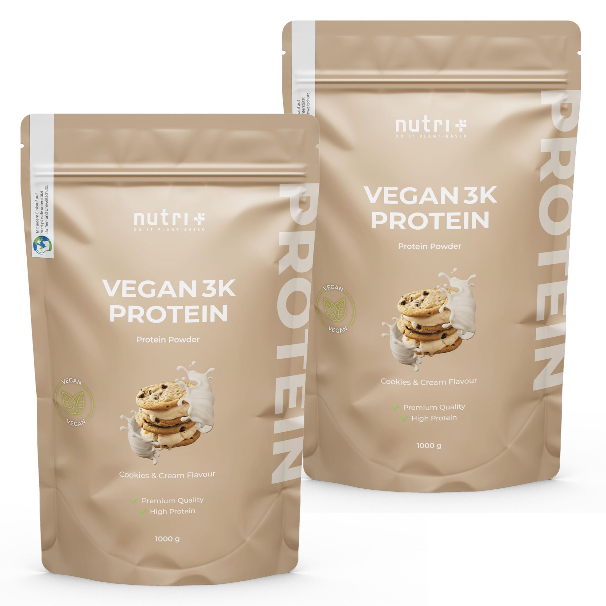 Nutri-Plus Shape & Shake Vegan è una proteina multicomponente a base vegetale e consiste - a seconda del gusto - in oltre l'80% di proteine (isolato proteico di soia senza OGM, isolato proteico di pisello e proteine del grano).
