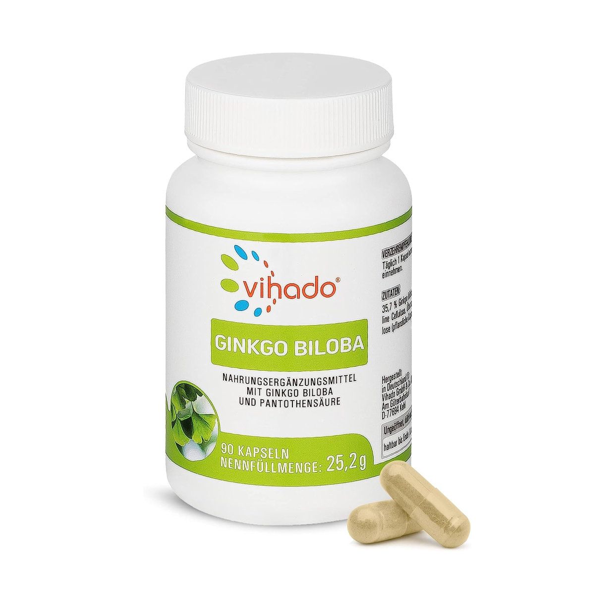 Contenuto della fornitura: 1x capsule Vihado Ginkgo Biloba, ginkgo ad alto dosaggio come integratore alimentare, sostanza vegetale comprovata dell'albero di ginkgo cinese, 90 capsule (25,3 g)