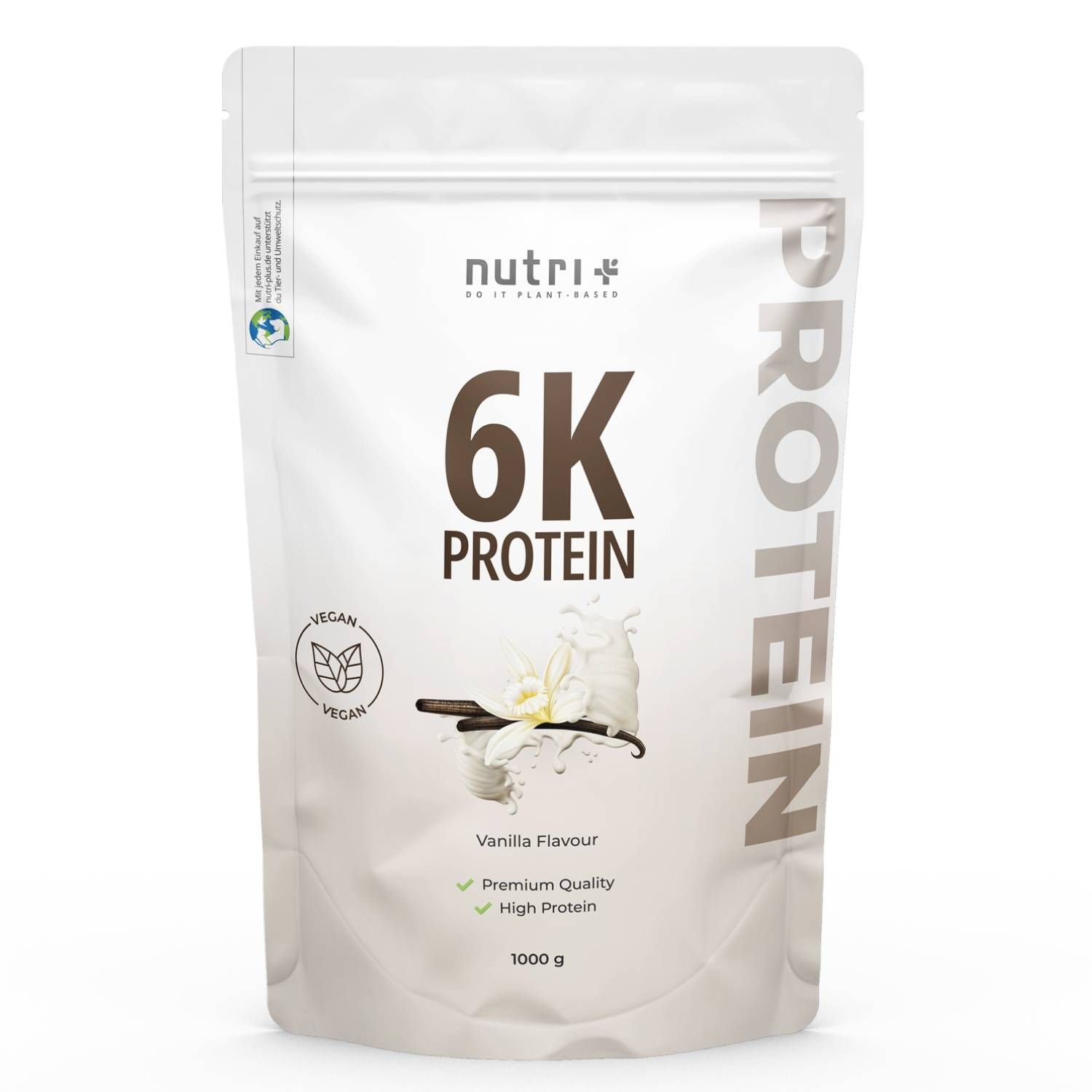 nutri+ 6K Protein è una proteina multicomponente di origine vegetale e consiste in oltre l'80% di proteine (proteine isolate della soia, proteine isolate del pisello, proteine del riso, proteine del girasole, proteine delle mandorle e proteine del grano).