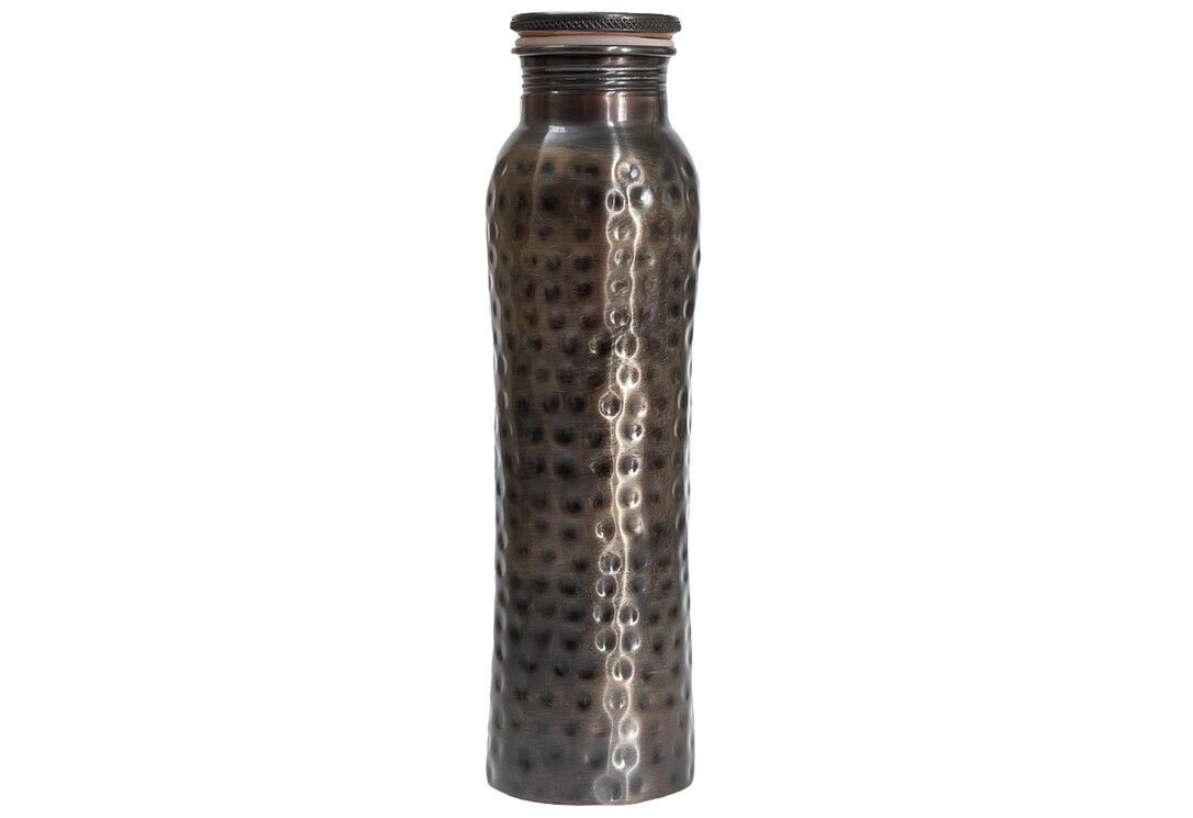 Diese kräftige Flasche ist ein echter Blickfang! Das rustikale Äußere wird Ihnen unterwegs sicher mehr als nur ein paar Komplimente einbringen. Das dunkle Vintage-Finish verleiht der Flasche einen antiken Charme, fast wie ein Sammlerstück. Lagern Sie Ihr Trinkwasser über Nacht oder über einen Zeitraum von 8 Stunden, um sich der maximalen Nutzen von angereichertem Wasser zu erfreuen. Dieses mit Kupfer angereicherte Wasser ist alkalisch und bietet gewisse Vitalitätsvorteile laut Ayurveda. Das heißt, die Flasche ist viel mehr als reine Ästhetik und Funktionalität! Also ob beim Laufen, auf dem Weg zur Arbeit oder einfach zu Hause – die antike Flasche ist Ihr perfekter Partner durch den Tag - Nur für stilles Wasser.Technische Details: Name Wert Marke FORREST & LOVE Farbe kupferfarben, dunkles antikes finish Materialmix 99,7% lebensmittelechtes Kupfer / Silikon Höhe 27.5 cm Durchmesser 7 cm Gewicht 280 g Volumen 900 ml Spuelmaschinengeeignet nein Sicherheitsmerkmale Nur für stilles Wasser