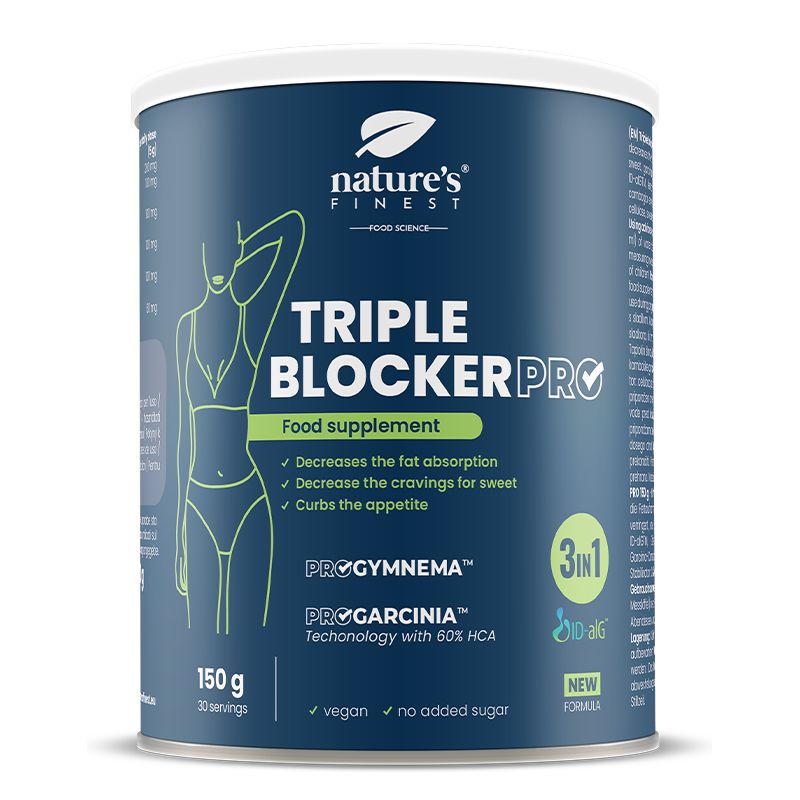 Scopri Triple Blocker PRO di Nature’s Finest – una formula avanzata 3-in-1 che blocca carboidrati, zuccheri e grassi, riduce le voglie e ti aiuta efficacemente a dimagrire. Questa miscela esclusiva combina estratti brevettati come ID-alG™, ProGymnema™ e ProGarcinia™ (60% HCA) per ridurre l’assunzione calorica e stimolare la combustione dei grassi.
