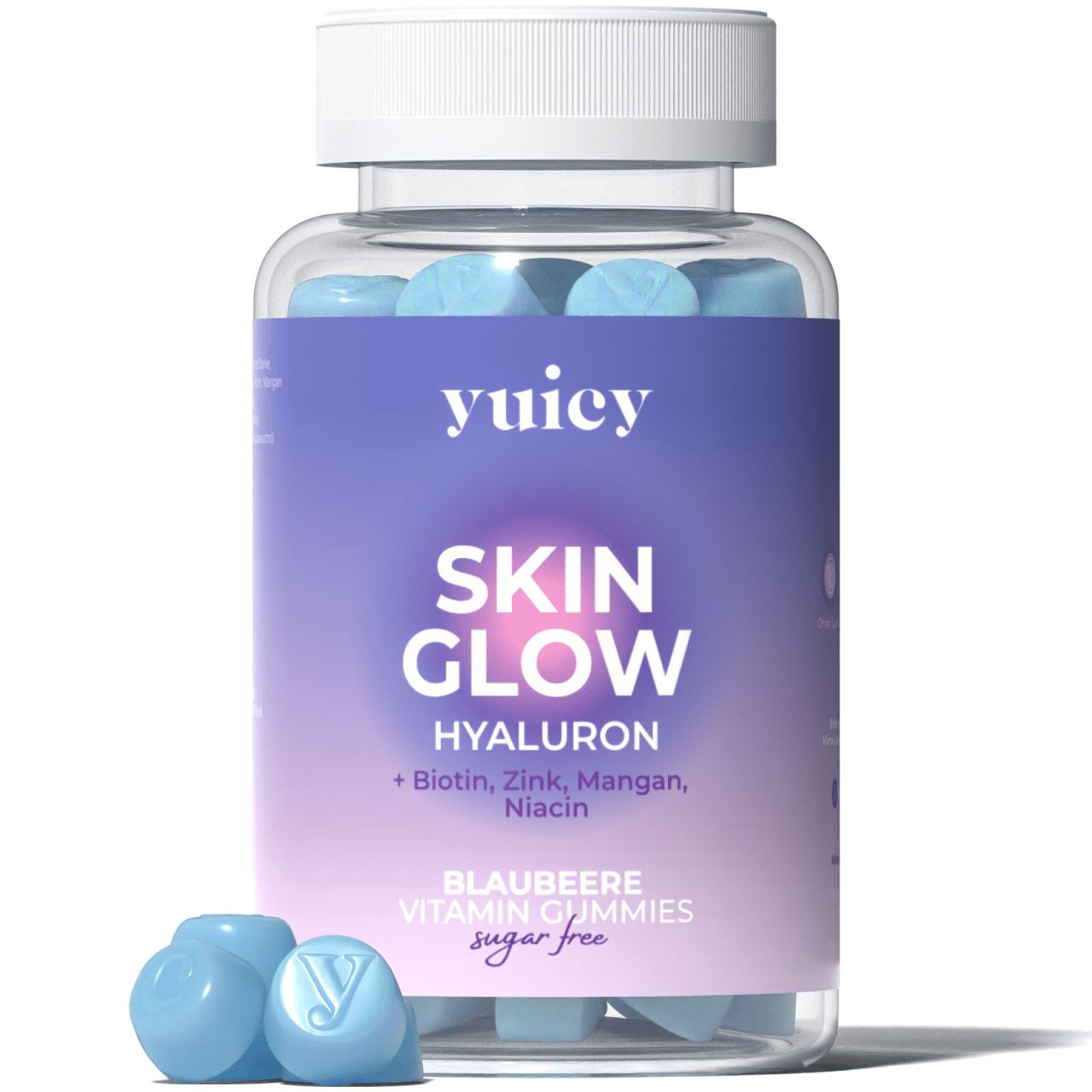 Dona alla tua pelle una purezza radiosa dall'interno con le gommose Yuicy® Skin Glow. Le nostre gommose vitaminiche forniscono alla pelle acido ialuronico, zinco, manganese, biotina, niacina e altri minerali essenziali per una pelle chiara e una luminosità naturale. Goditi il più delizioso integratore per la pelle al gusto di mirtillo. Le nostre gommose vegane e senza zucchero rafforzano la pelle dall'interno e trasformano l'assunzione quotidiana nel tuo personale rituale di benessere. La nostra formula unica è stata appositamente sviluppata per combattere le rughe e promuovere una pelle raffinata e liscia come la seta. Yuicy® Skin Glow Gummies sono più di semplici vitamine per la pelle: sono il tuo segreto per una pelle chiara, un effetto antirughe e un'esperienza di pelle pulita. Ottieni la luminosità che meriti e scopri l'impressionante potenziale delle nostre gommose per capelli, pelle e unghie.