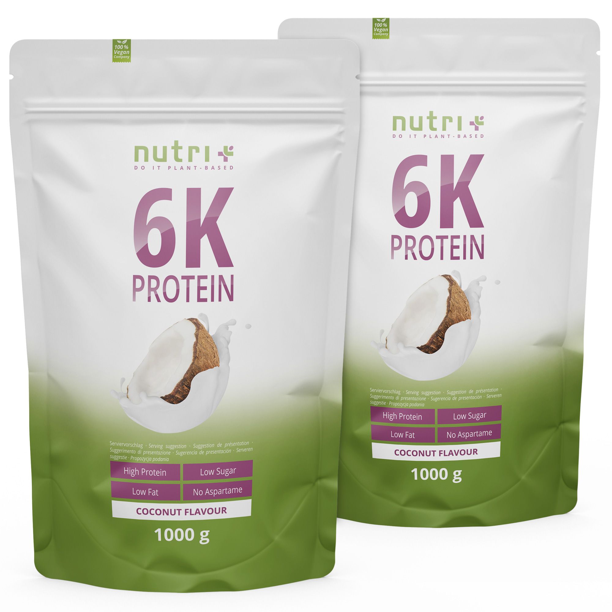 nutri+ 6K Protein è una proteina multicomponente di origine vegetale e consiste in oltre l'80% di proteine (proteine isolate della soia, proteine isolate del pisello, proteine del riso, proteine del girasole, proteine delle mandorle e proteine del grano).