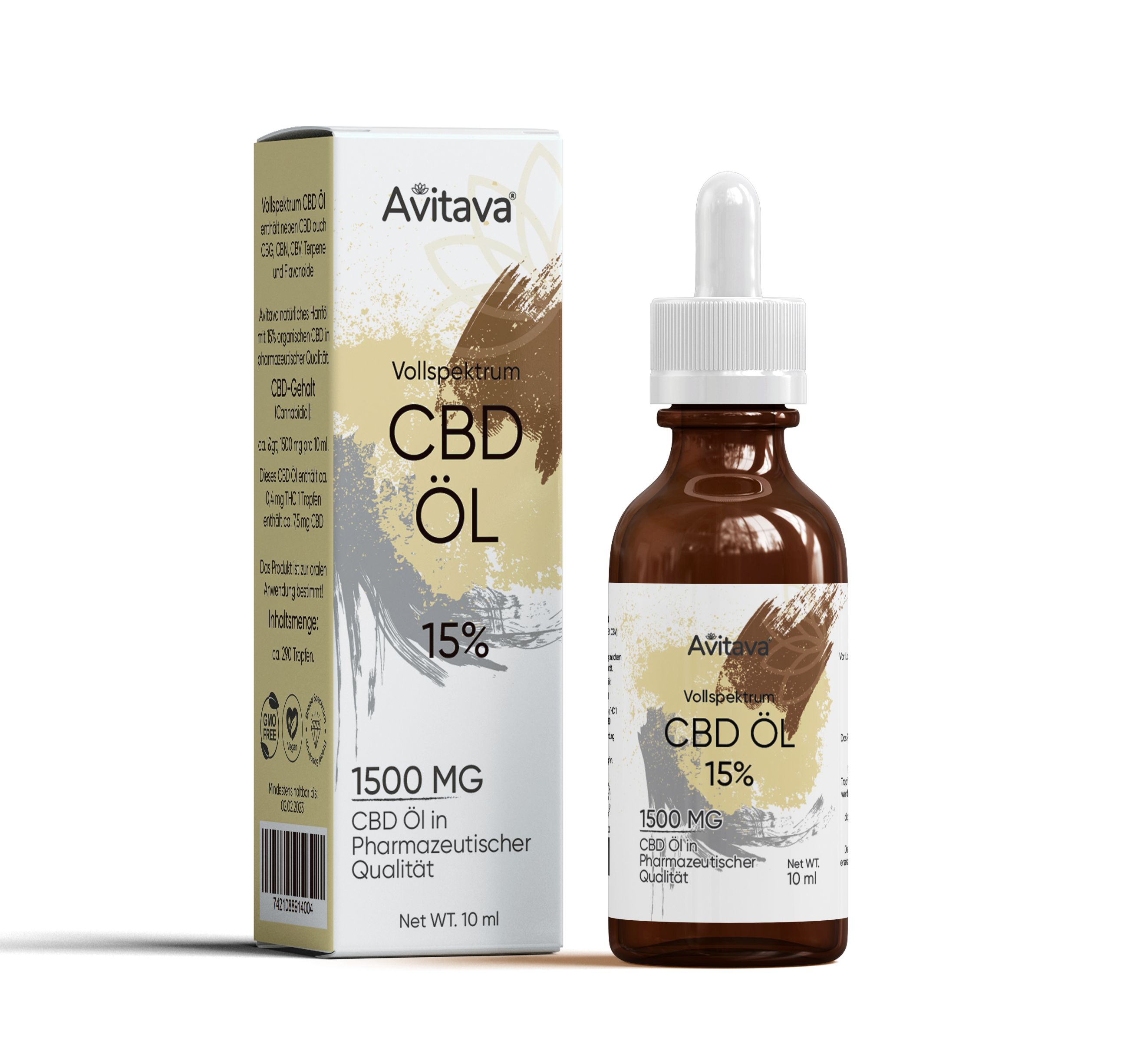 L'olio CBD a spettro completo Avitava al 15% contiene terpeni e cannabinoidi CBN, CBV, CBG, CBC L'olio CBD Avitava al 15% è un prodotto CBD con la gamma completa di ingredienti. Oltre al noto CBD, questo olio contiene anche altri importanti cannabinoidi come CBD, CBV, CBD e CBD. Inoltre, terpeni e flavonoidi. Gli oli che hanno questo spettro di ingredienti sono chiamati oli a spettro completo. Il sapore dell'olio varia da canapa a nocciola, a volte un po' aspro. Gli oli a spettro completo di CBD non devono essere utilizzati sugli animali e sono destinati e prodotti esclusivamente per gli esseri umani. Questo prodotto contiene 1500 mg (ovvero 1,5 grammi) di CBD puro. La sostanza vettore del CBD è puro olio di semi di canapa proveniente dall'Olanda. Il contenuto della bottiglia è una miscela di olio di semi di canapa e CBD. Istruzioni per l'uso Usa questo olio CBD se compaiono i sintomi. Il dosaggio è a tua discrezione. Poiché il CBD non è un farmaco ma un integratore alimentare, per motivi legali non possiamo fornire alcuna informazione su dosaggi e sintomi. Tuttavia, sappiamo per esperienza e feedback dei nostri clienti che le gocce di CBD dovrebbero essere assunte in un piccolo dosaggio, circa 3 x 3 gocce. Il dosaggio può quindi essere più alto o più basso a seconda delle vostre esigenze. È meglio dosare fino al punto in cui si è verificato un miglioramento. Sul lato destro alla voce di menu “Target” trovate un elenco dei possibili campi di applicazione. Se hai domande sul prodotto, inviaci un'e-mail o chiamaci. Flacone da 10 ml L'estrazione delicata con Co2 è considerata un integratore alimentare non necessita di prescrizione o farmacia 100% NON OGM 1500 mg CBD (cannabidiolo) max 0,2% THC privo di glutine, lattosio o fruttosio privo di erbicidi, fungicidi o pesticidi senza conservanti o artificiali colori vegan Effetto entourage a spettro completo contiene terpeni contiene cannabinoidi come CBN, CBV, CBG, CBC