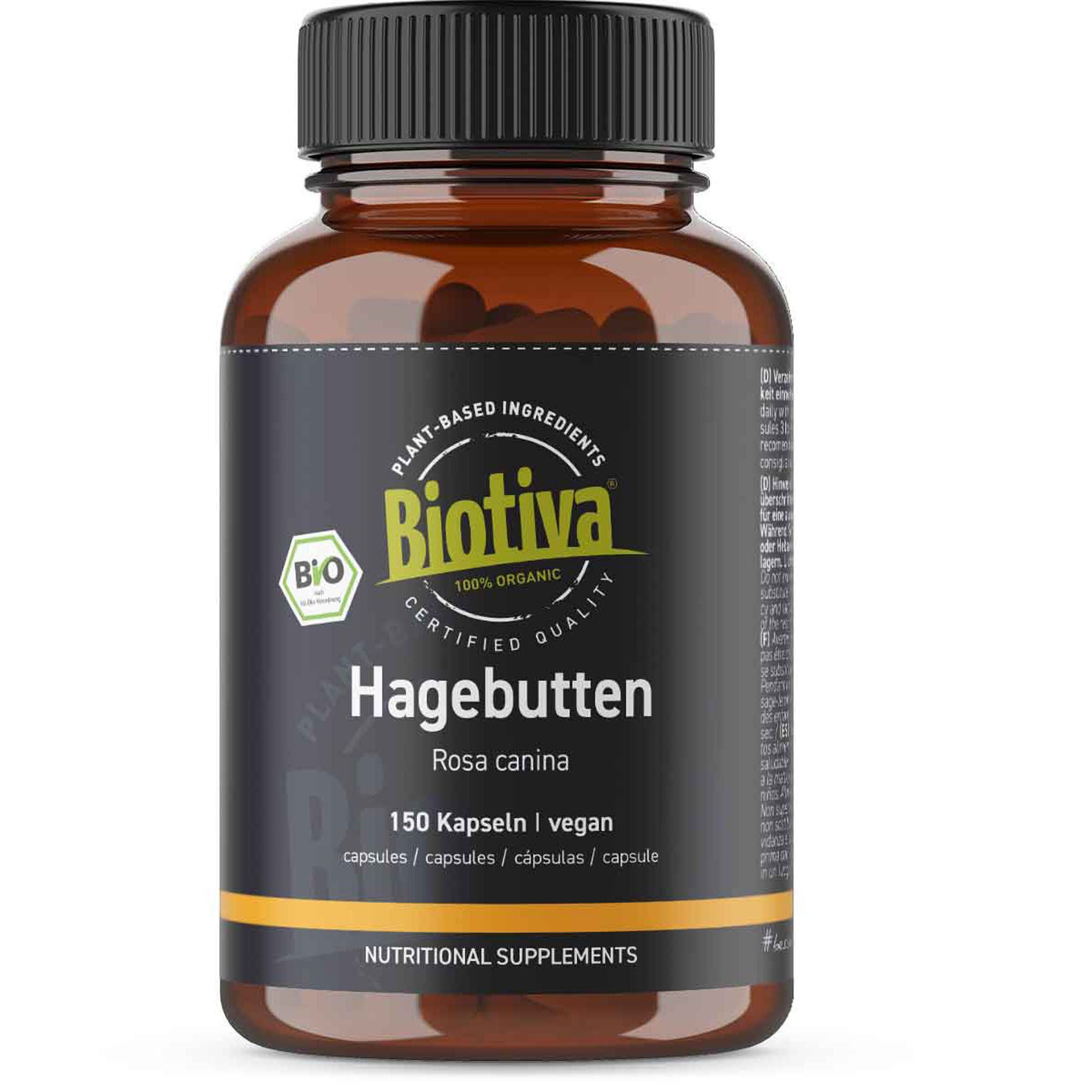 La nostra polvere di rosa canina Biotiva è ottenuta dai frutti essiccati della rosa canina (secondo Rosa canina). Il cespuglio di rosa canina si trova ai margini delle foreste o nelle siepi in Europa, Nord America, parti dell'Asia e Nord Africa. La rosa canina rosso brillante è un falso frutto che contiene semi. Per produrre la polvere di rosa canina, i frutti appena raccolti vengono essiccati delicatamente per non perdere gli ingredienti. La nostra polvere di rosa canina è composta da rosa canina intera macinata. La polvere è contenuta in capsule HPMC vegane.